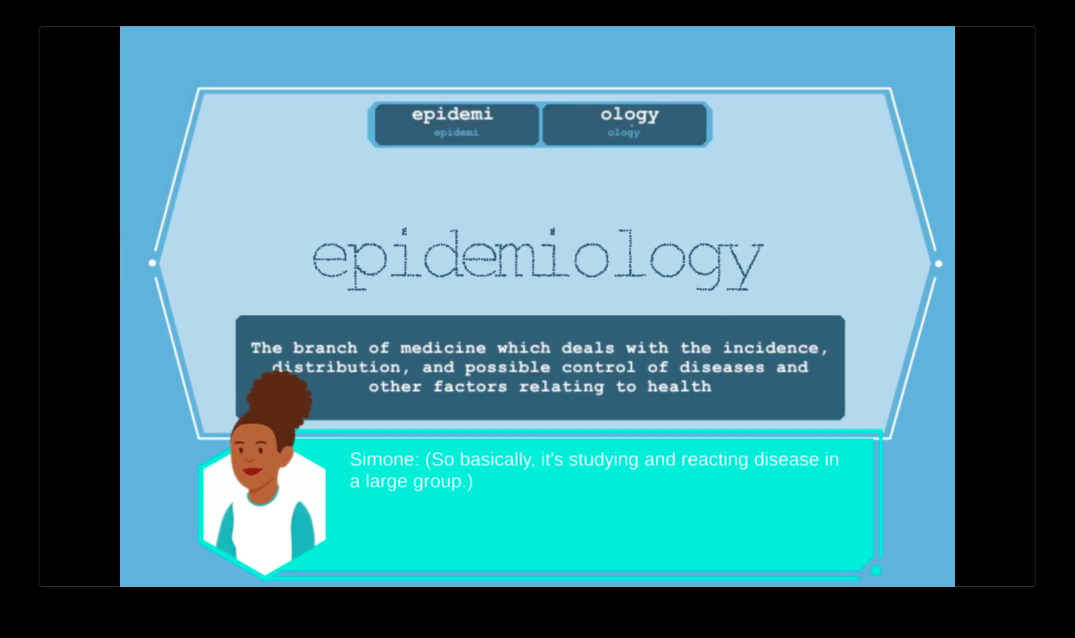 Over the course of gameplay, Simone realizes that the mysterious illness is systemic in nature. She must complete the quest by using the scientific skills she has learned to engage with civic leadership (e.g. mayor and policymakers) and improve the conditions by taking civic action.