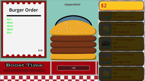 Take and prepare orders in your burger restaurant by typing out the ingredients as fast as possible! Buy upgrades, unlock new ingredients and get automation for your restaurant to become a more efficient Burger Typer. BIG BUCKS ARE AWAITING YOU