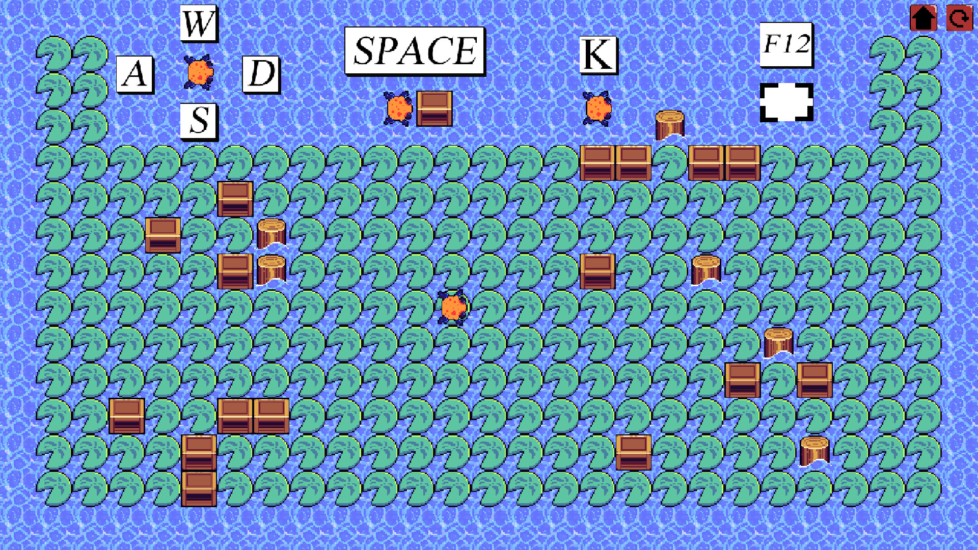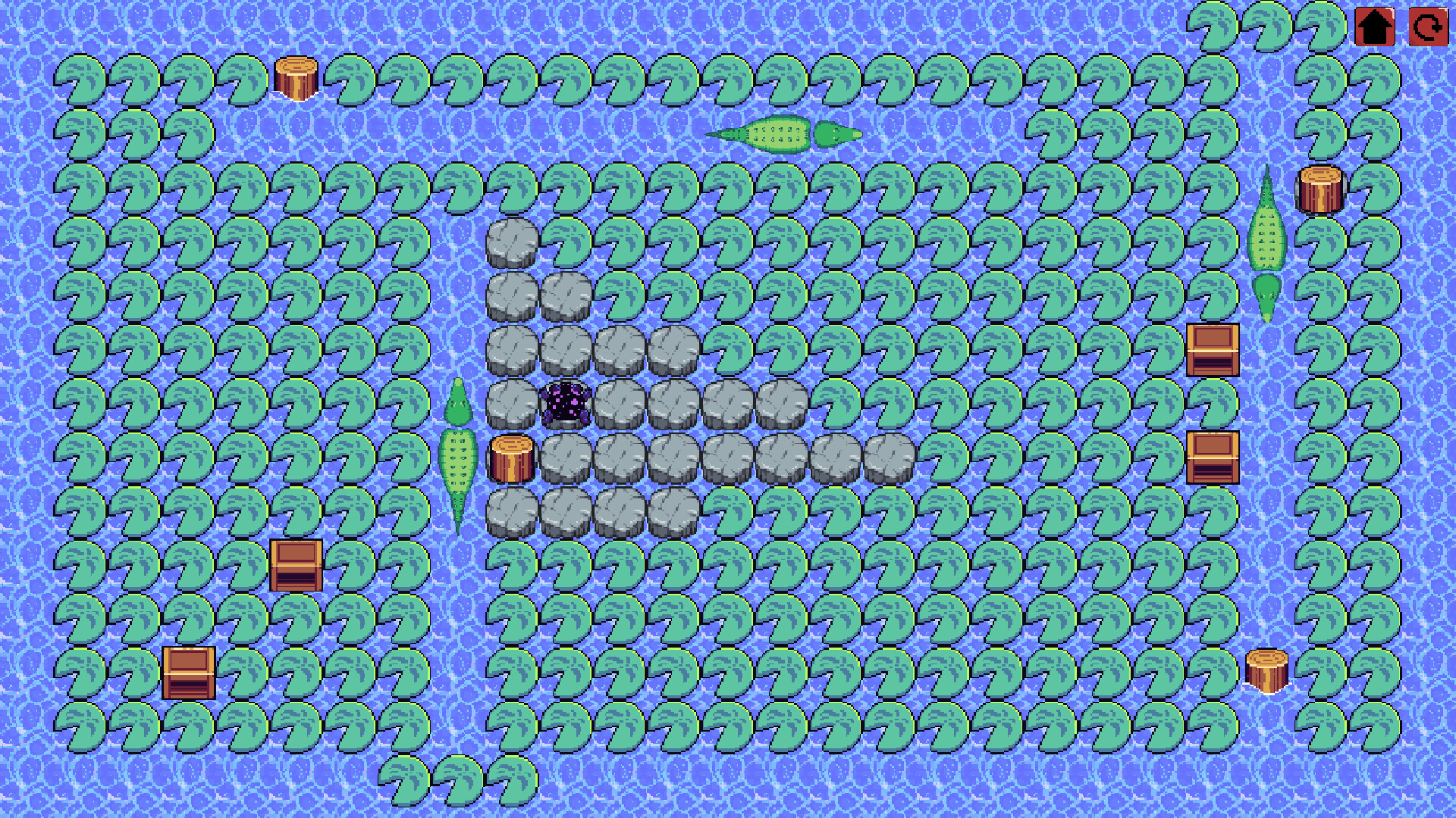 The levels are designed with a variety of natural elements such as fallen logs, rocks, and streams that affect the movement of the boxes and the frog's path. These elements are not just obstacles but also tools you can use to solve puzzles creatively. For example, a log might serve as a temporary support to push a box to the desired location.
