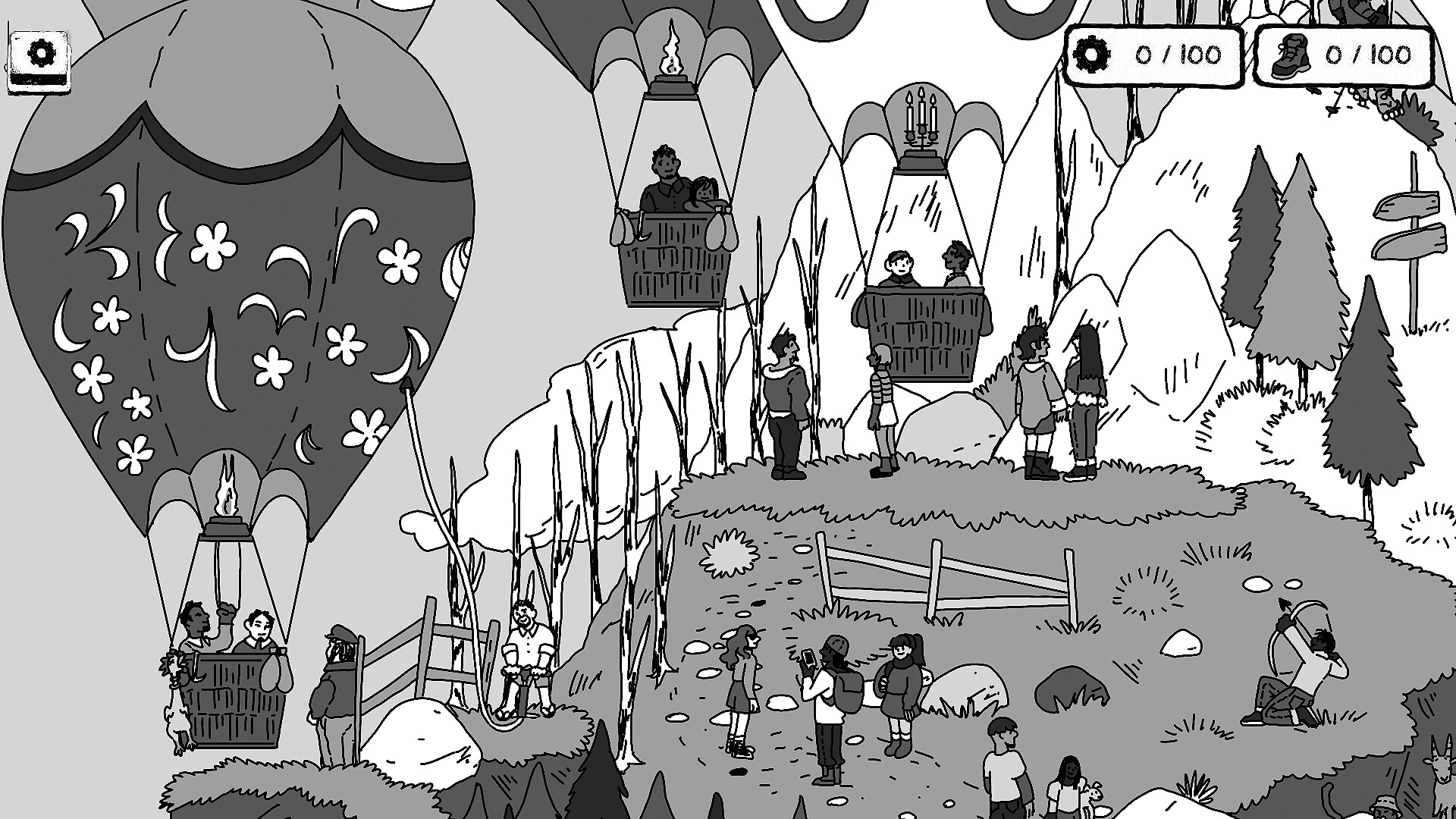Search for hidden characters with unusual and silly behaviors in a hand-drawn, interactive scene set on a mountain. These kooky characters are cleverly concealed in plain sight among others. Additionally, there are a few mini-games to challenge you and earn credits that will aid in discovering the kooky characters. To complete the game, you also have to find all 100 hiking boots.