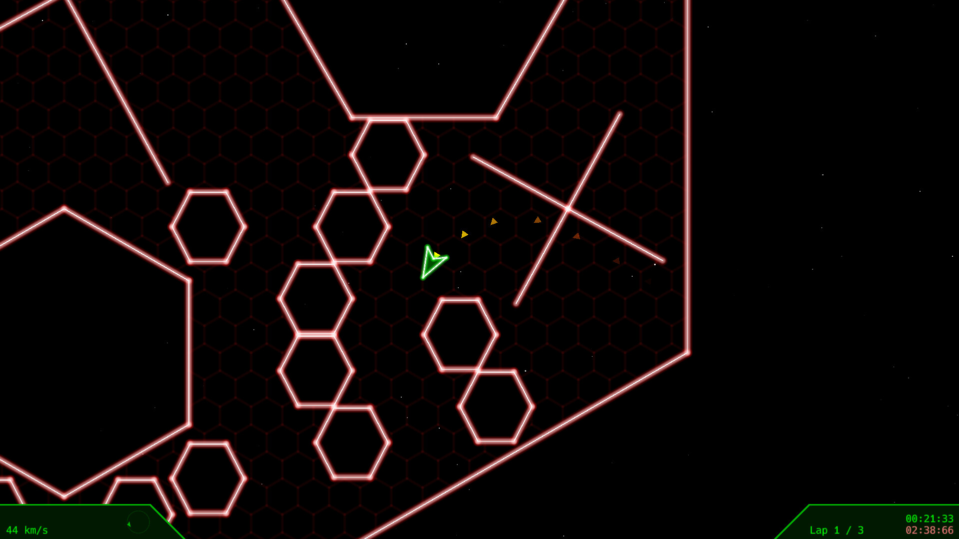 Cosmic Racer is an arcade vector racing game. Race against the clock as you navigate through neon vector space environments to achieve high scores. Skillfully maneuver through dynamic obstacles while utilizing boost and break abilities with precise timing for best results.