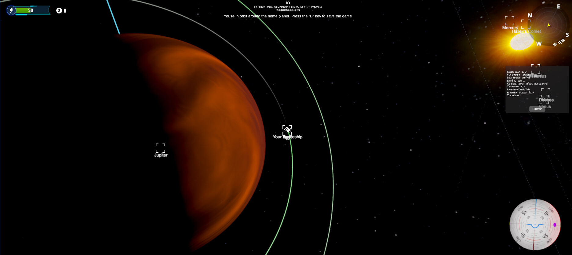 Travel throughout the solar system based on Kepler's realistic laws of gravity. Invent your own routes between planets, use gravity, trade, complete missions and upgrade your spaceship!