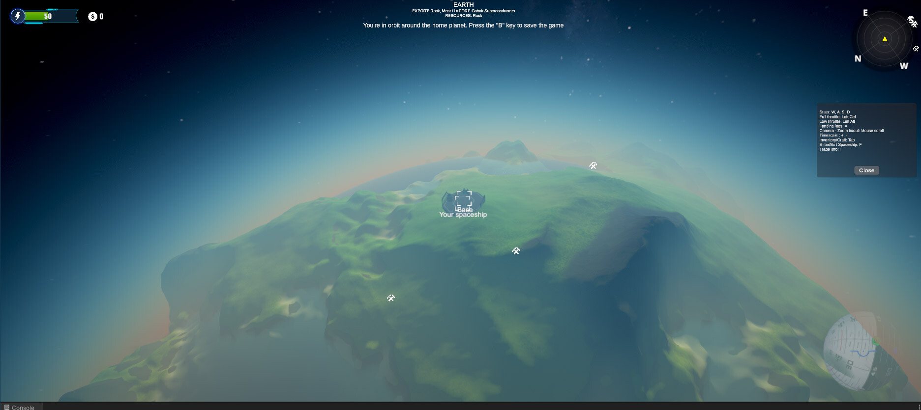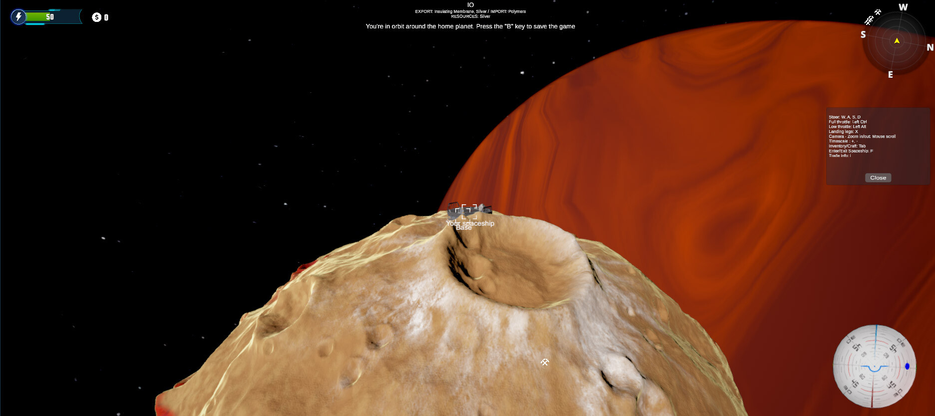 The game contains the entire solar system, processed to the smallest detail. Use the mutual gravity of the bodies to travel and save precious fuel to travel between bases.