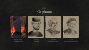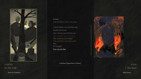 After listening to all three stories and choosing a fate for each protagonist, you get to pick which Face of God you are. Are you the Desperate Face? The Suffering Face? The Hopeful Face? This is your final decision based on your own experience.