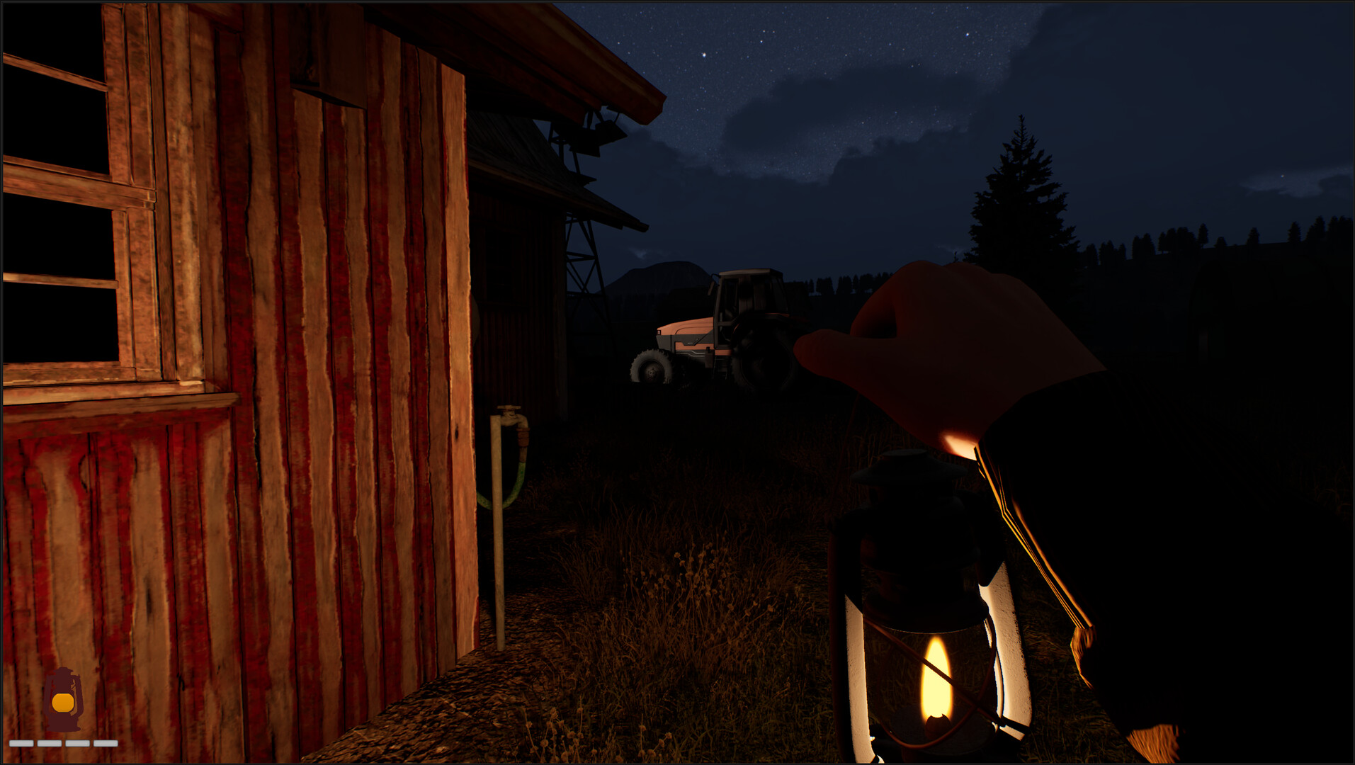 With night falling and odd lights flashing off in the distance hours ago. Awaken to the sound of your neighbors farm dog barking outside. Lead Jeffery the dog home using your trusty lantern to light the way, Just make sure to keep track of your fuel. Deal with slight puzzles along this Sci-fi horror adventure and learn what has happened to your neighbor. With something hiding in the dark and your car broken down. You must find a way to protect yourself and Jeffery and get away from the area. Before its to late.