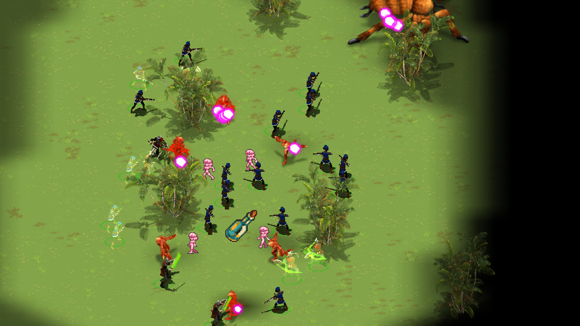 Brute pathing: Every unit pathfinds individually. No unit blobs and no pushing other units out of the way