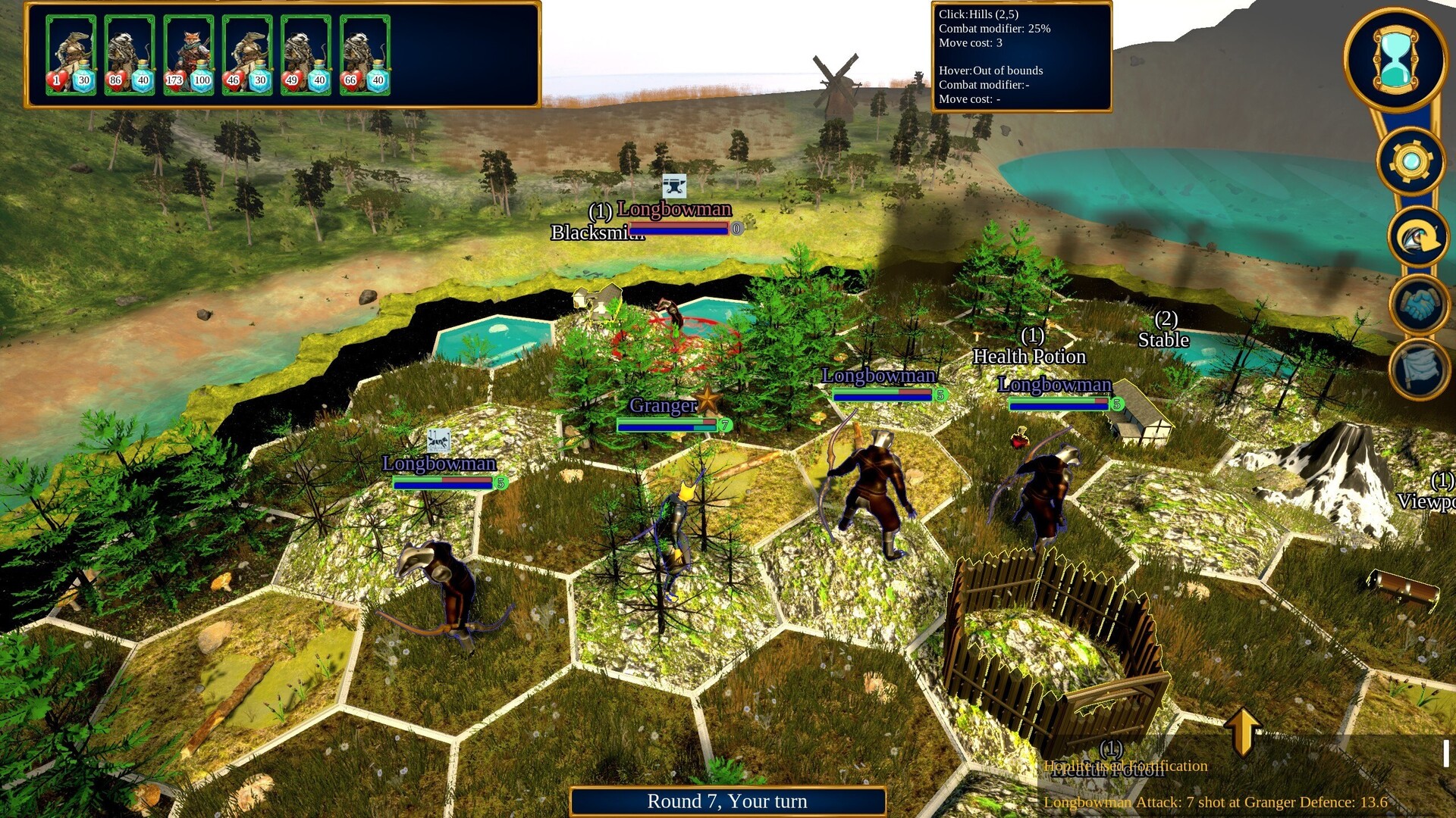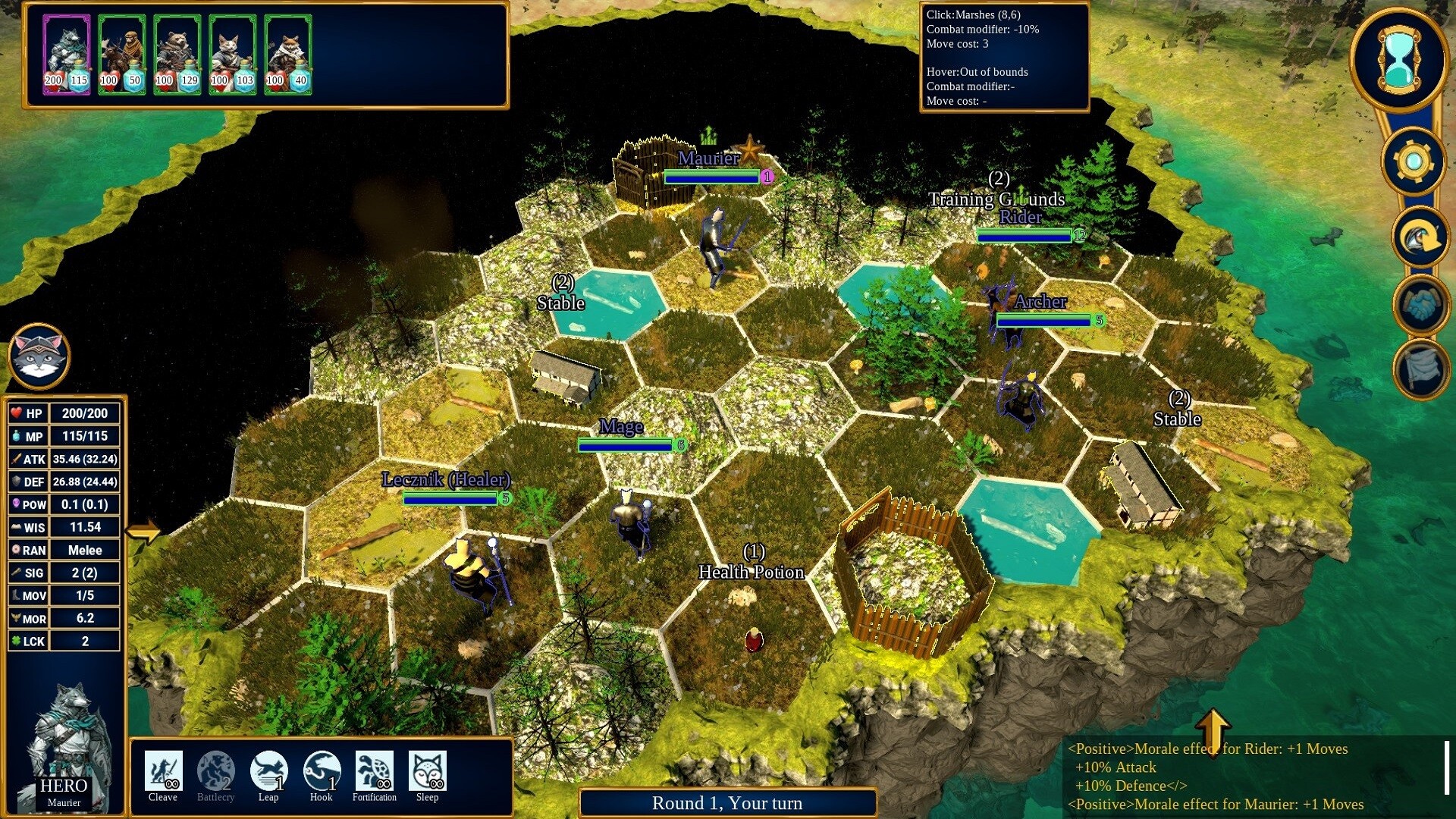 - Strategic Turn-Based Battles: Face off against your opponent on a hex-based board, where every move counts. Utilize terrain, plan your moves and attacks carefully to outsmart your enemy.