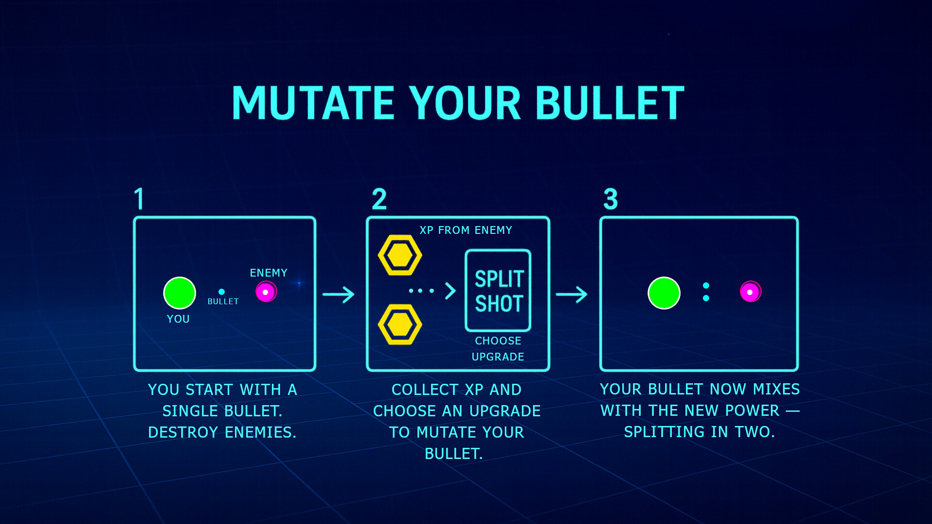 Повышайте уровень и выбирайте улучшения, которые мутируют вашу пулю.