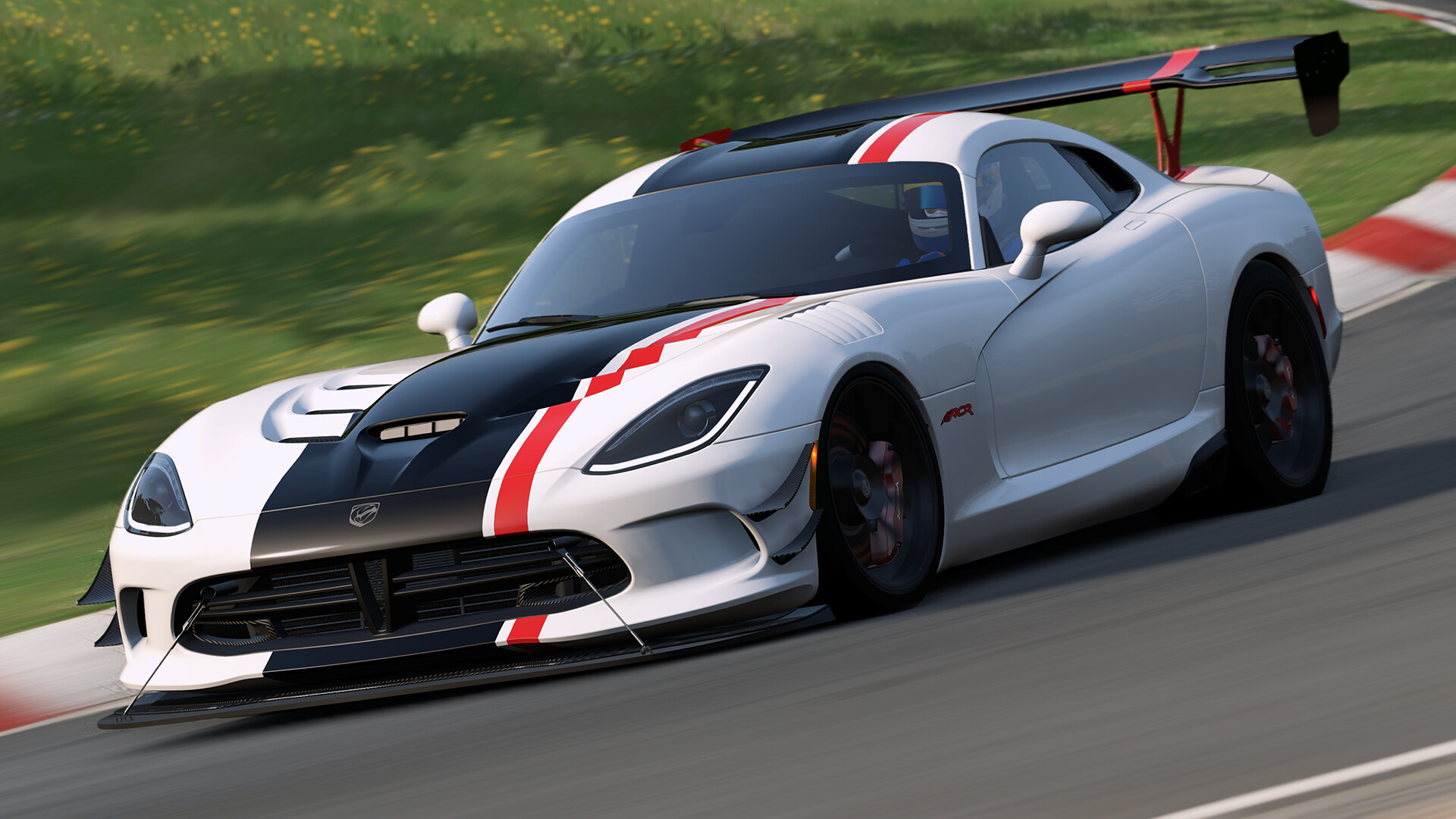 The Dodge Viper ACR brings some American muscle to the mix, for the old school types who think that cars ought to be manhandled to be driven fast and who don´t agree with gear shifting without a stick – the latest representation of the classic, still true to its design roots with a 8.4L V10 outputting 645 HP, with its Extreme Aero Package as we have it here it can also hold its own against the more modern cars in the hands of a capable driver.