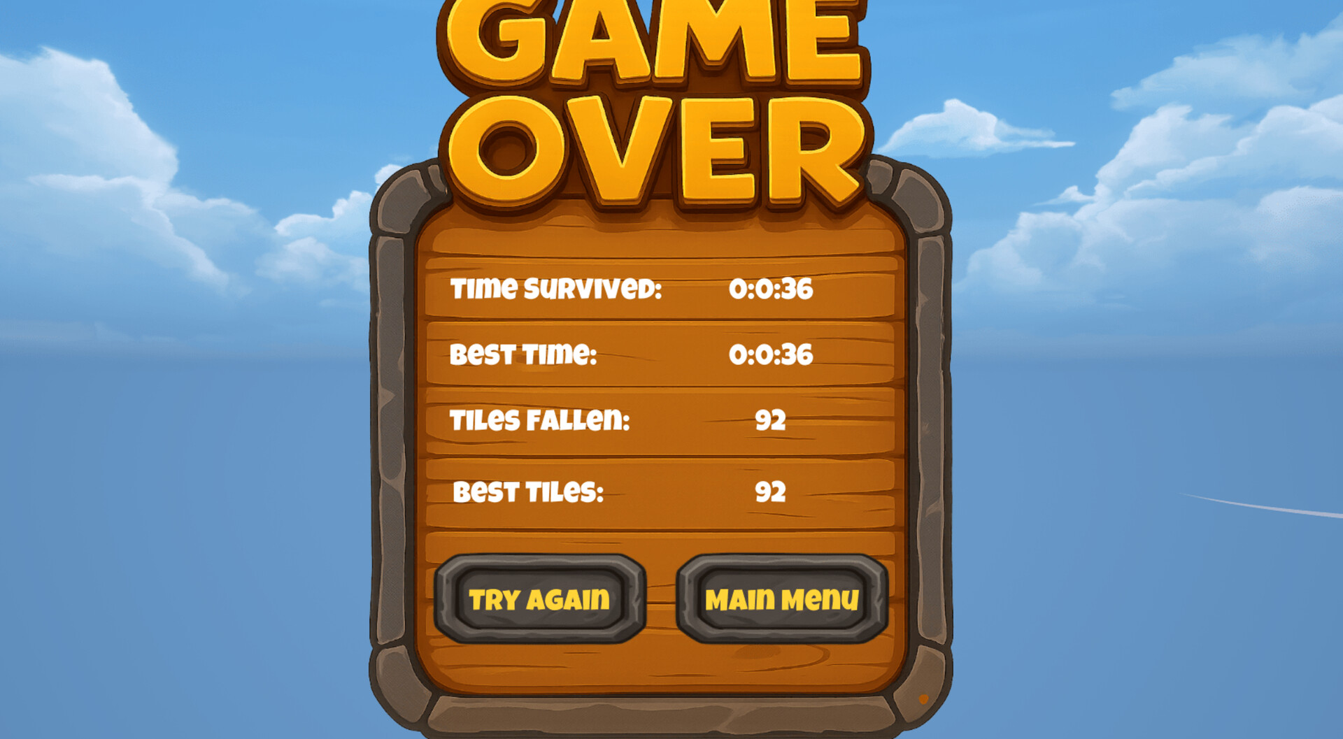 Time Attack: The floor is your enemy. Navigate a collapsing arena where tiles vanish beneath you. Move fast, stay on the remaining platforms, and survive for as long as possible as the world disappears.