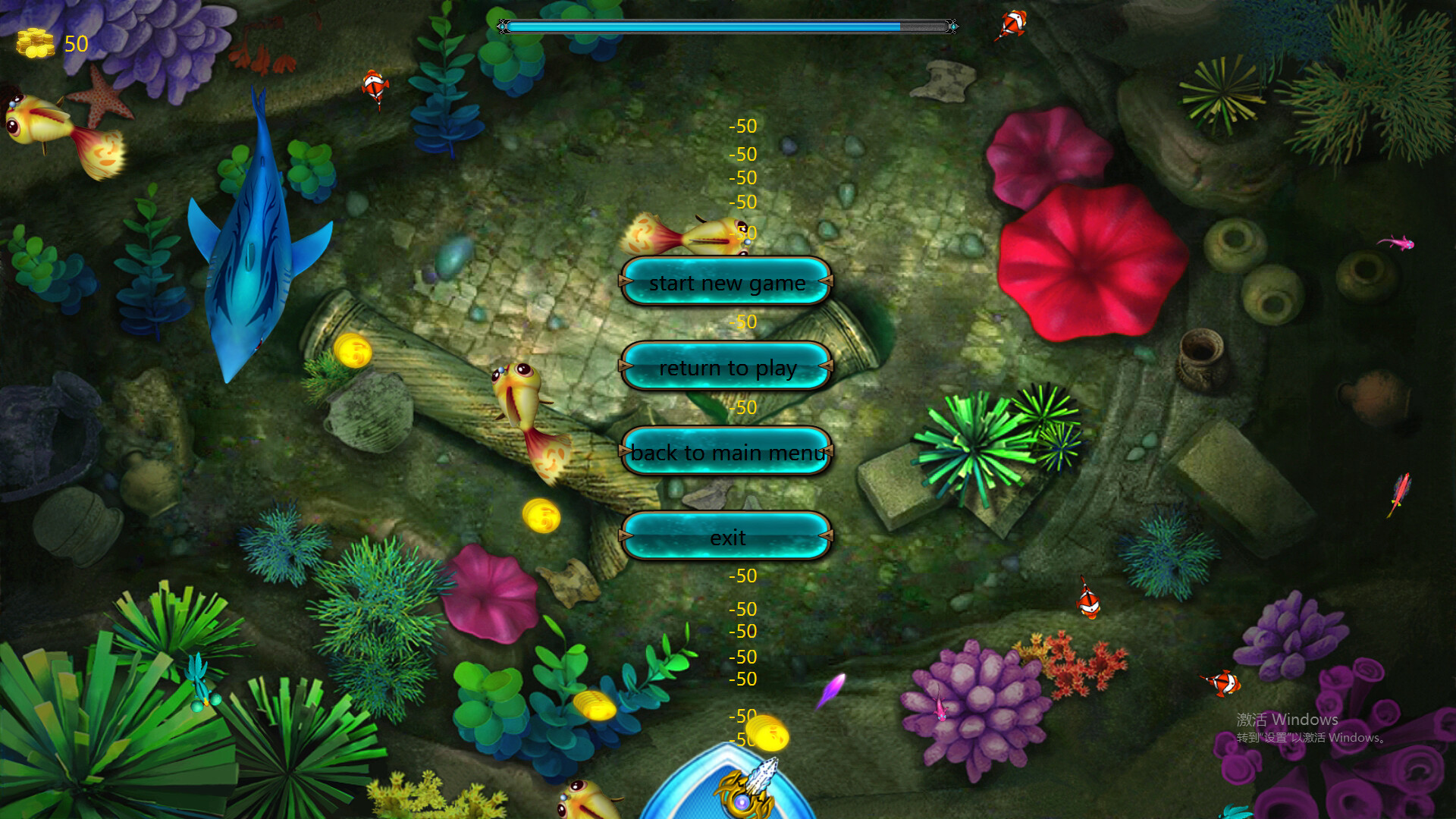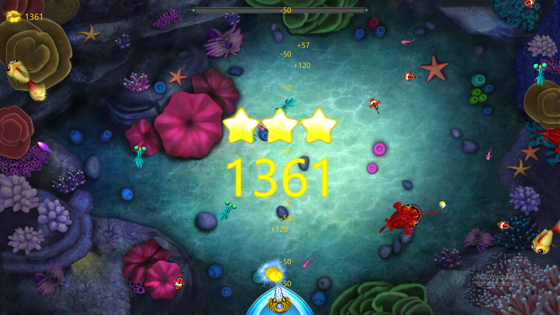 Basic Operations: Players capture fish by firing bullets, and the power of the bullets and the point values of the fish determine the amount of gold coins players earn.