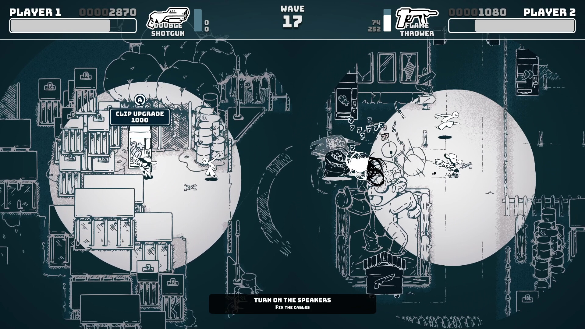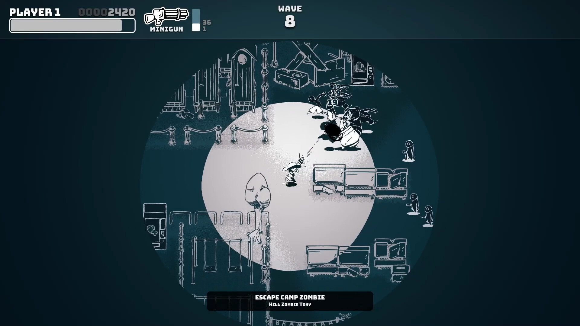 Face hordes of zombie in this black and white, top down shooter! Alone or in local coop, annihilate everything -and everyone- that stands in your way in order to make a safe exit from Zombie Camp! Camp Zombie is a cooperative arcade game with a fun and immediate concept, incorporating some mechanics from a zombie mode with the easy handling of a top-down shooter, all with a unique graphical style!