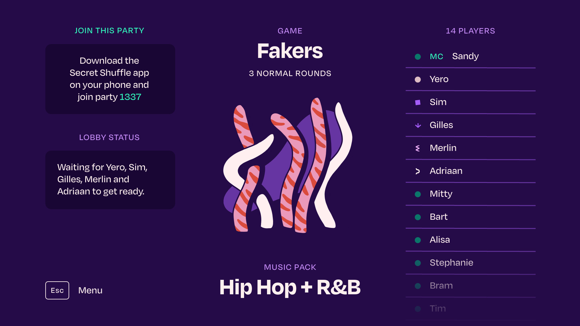 One player –the MC– selects one of the 10 games and a music pack. Once everyone is ready, the round kicks off with a brief explanation of the game followed by the start of the music. What happens next depends on the chosen game. Secret Shuffle includes 10 games, with Fakers, Split, and Statues (all three explained below!) often being crowd favorites.