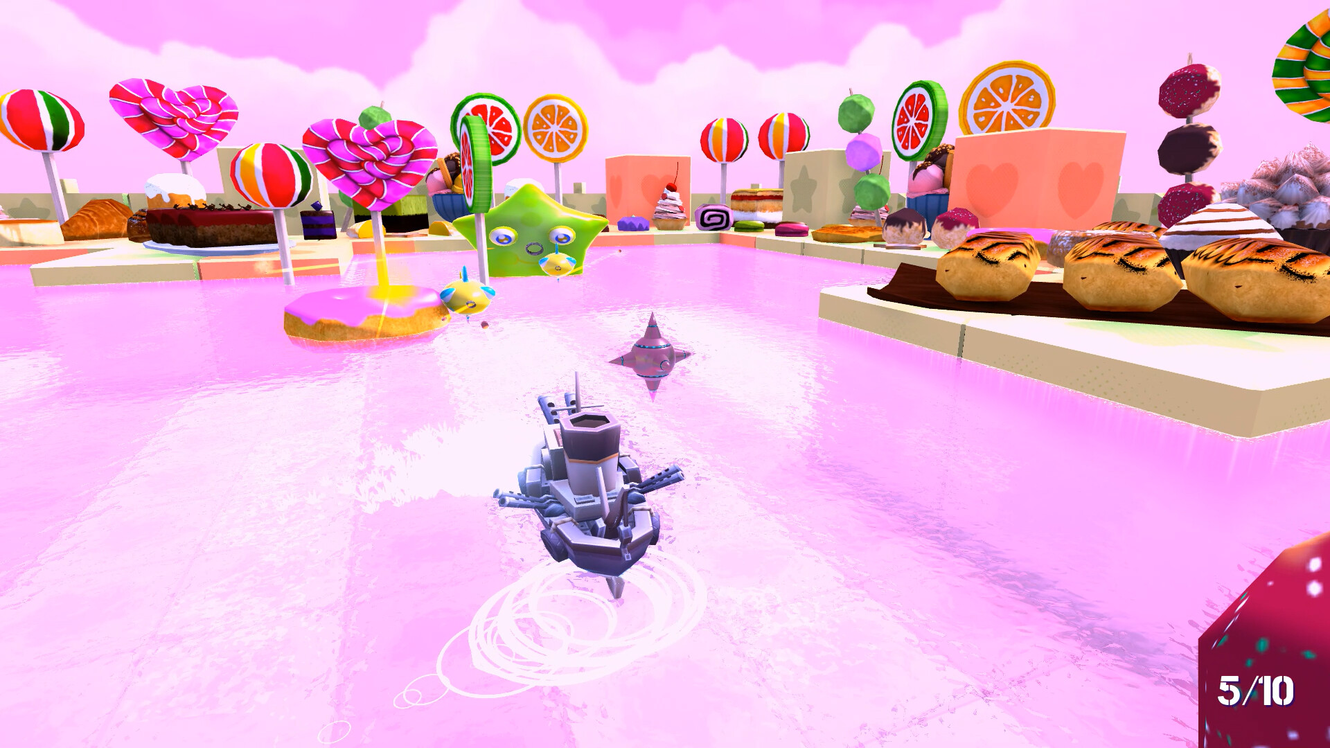 In this game, you play as a little toy boat that is trying to defend its pool from an evil toy fish invasion.