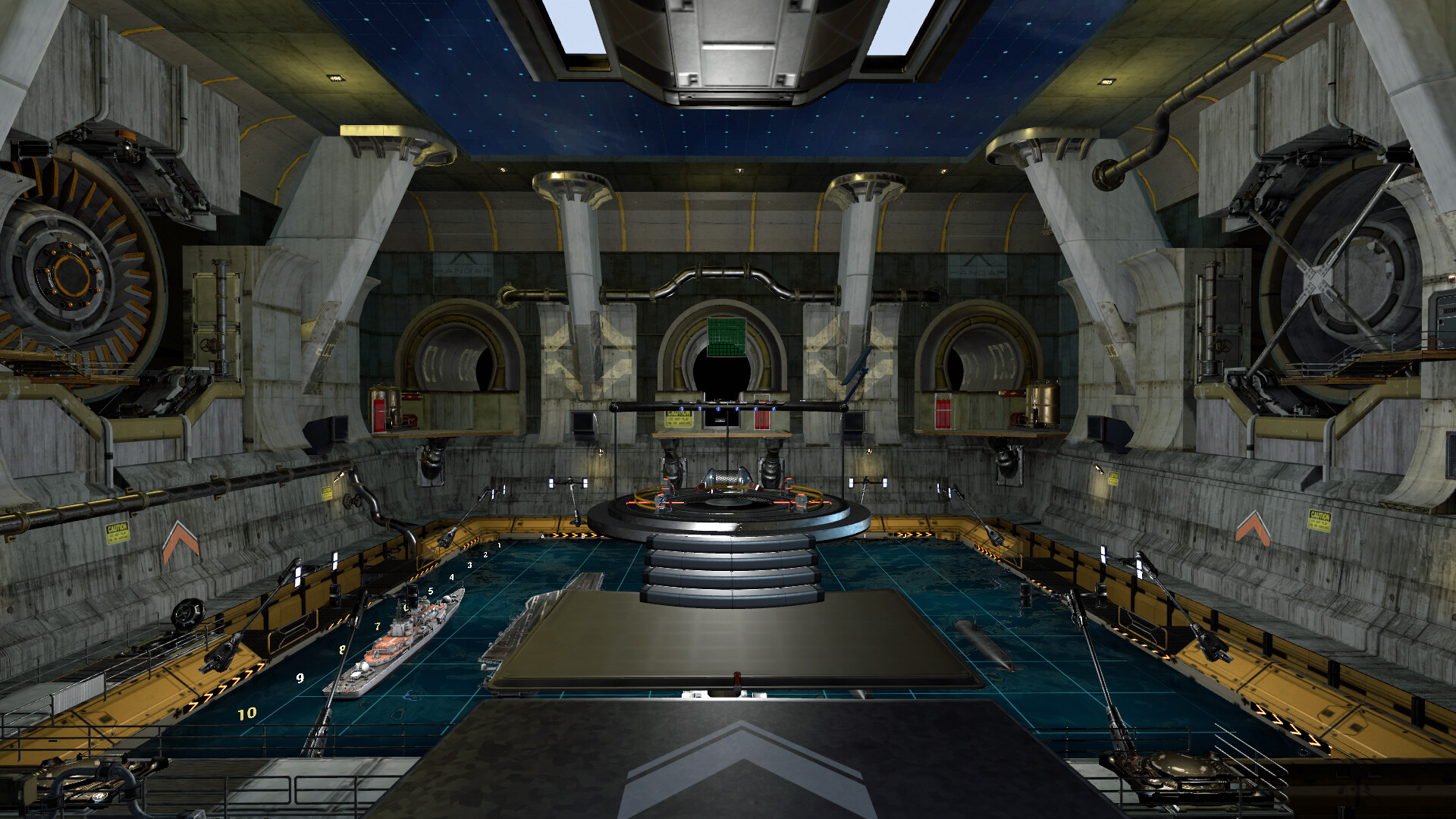 Действие игры происходит в промышленном здании, а игровые поля имеют длину 85 метров, ширину 51 метр и высоту 38 метров. Основные реквизиты включают бассейн площадью 42 квадратных метра, четыре разных модели военных кораблей, изображающих корабли каждого игрока, две ракетные пусковые установки, систему противовоздушной обороны и промышленные вентиляторы, которые можно включать и выключать. Кроме того, в Центр управления ведет лифт высотой 18 метров с голографическими дисплеями и двумя сетчатыми панелями для стратегической информации.