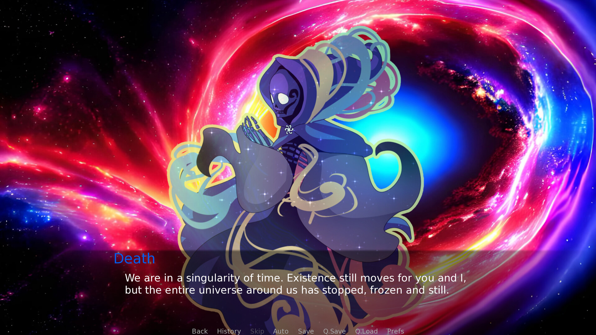 You have ended up in a singularity with none other than Death itself. Through a deep conversation, some self-reflection and LOTS of questions ranging from your history all the way down to your deepest feelings and secrets, Death just may be able to tell you when your time is up...