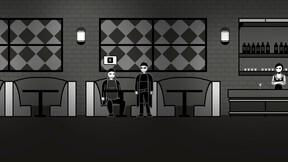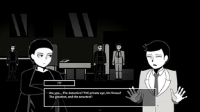 A side-scrolling noir-style detective game with sharp wit and biting satire