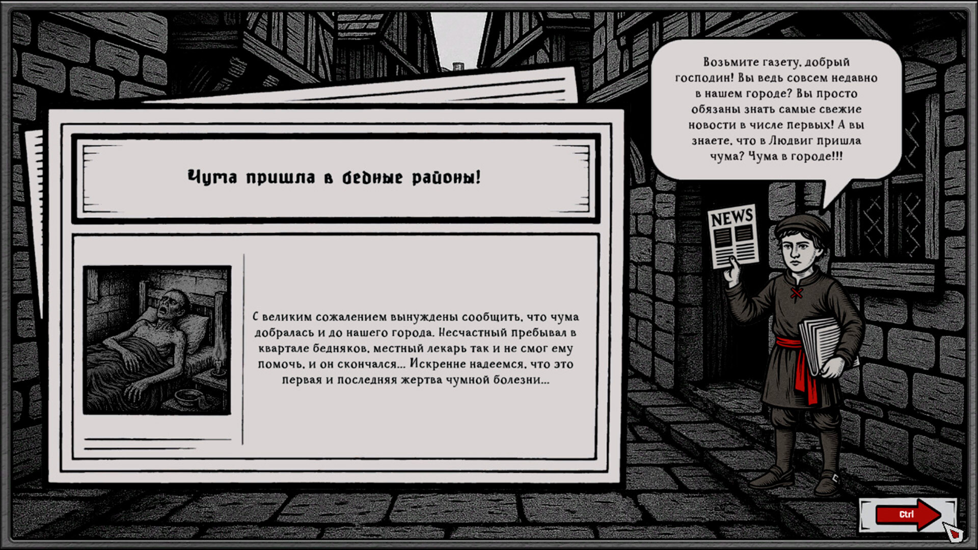 Чума опустилась на город Людвиг. Вы — чумной доктор, последний рубеж между жизнью и хаосом. Войдите в мрачные улочки умирающего города и познайте ремесло врача во времена мора. Диагностируйте, лечите, принимайте жестокие решения. Вводите карантины, сжигайте дома, боритесь с паникой и слухами. Каждое действие имеет цену — не все их переживут...