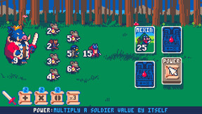 Super Algebrawl is a byte-sized tactics puzzle RPG where you control a boar king with magical mathematical powers! The king can add up and multiply his animal underlings to match whatever enemy opposes him! He is on a quest for glory, slaying the horrible monsters that plague the animal realm, and recruiting valiant heroes to add up to his numbers.