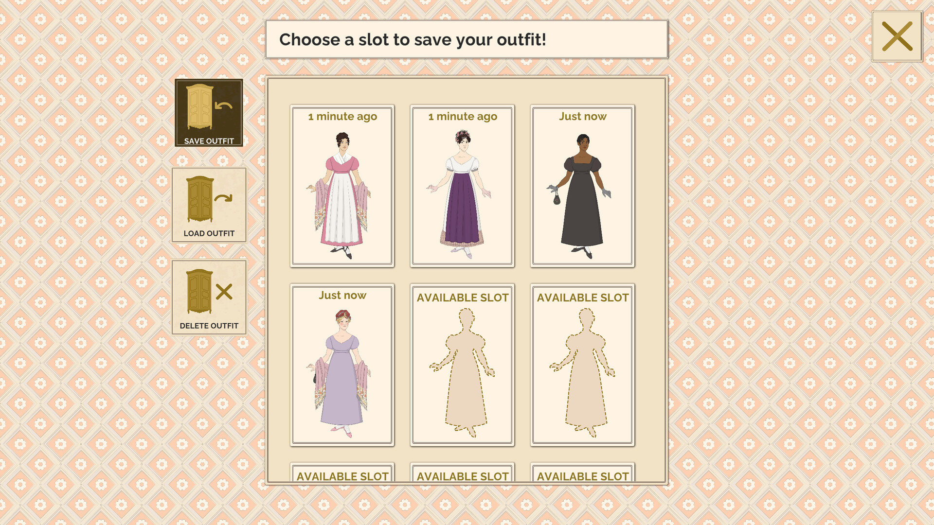 ?Casual and Relaxing This game is designed for those seeking a relaxing experience while also learning a thing or two about historical fashion. Or for all the fashion enthusiasts out there just wanting to dive into the details of 1820s fashion.