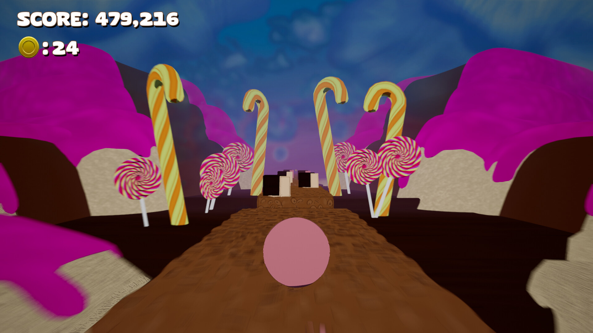 Swap your ball colour between chocolate and strawberry to travel through colour gates! Make sure you have the correct colour, otherwise you will get a game over!