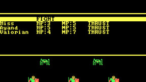 This pivotal game boasts a number of new and improved features. Bows and arrows and ever more potent spells have been added to the long list of weapons. During combat, you can move each character to the front, middle, or back of the party. You can also aim your spells at different ranks of the enemy. You determine which skills an individual character should improve on as he gains experience. Wounds are specified by body location and extent of injury.