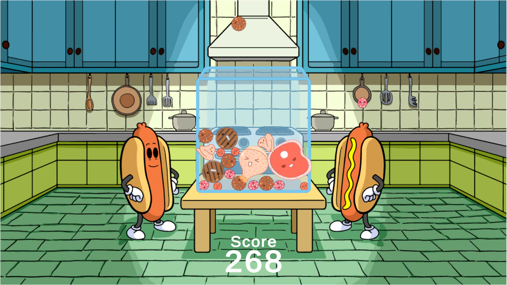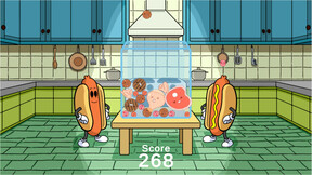 Have you ever played some game with watermelons and persimmons (whatever those are) but thought "Gross, fruits are a healthy choice for both my body and the environment"? Good, because this game is like that game, but it is full of heart-clogging proteins and greenhouse gas emissions. Join some hotdogs in the kitchen in their quest for the meats they've been missing.