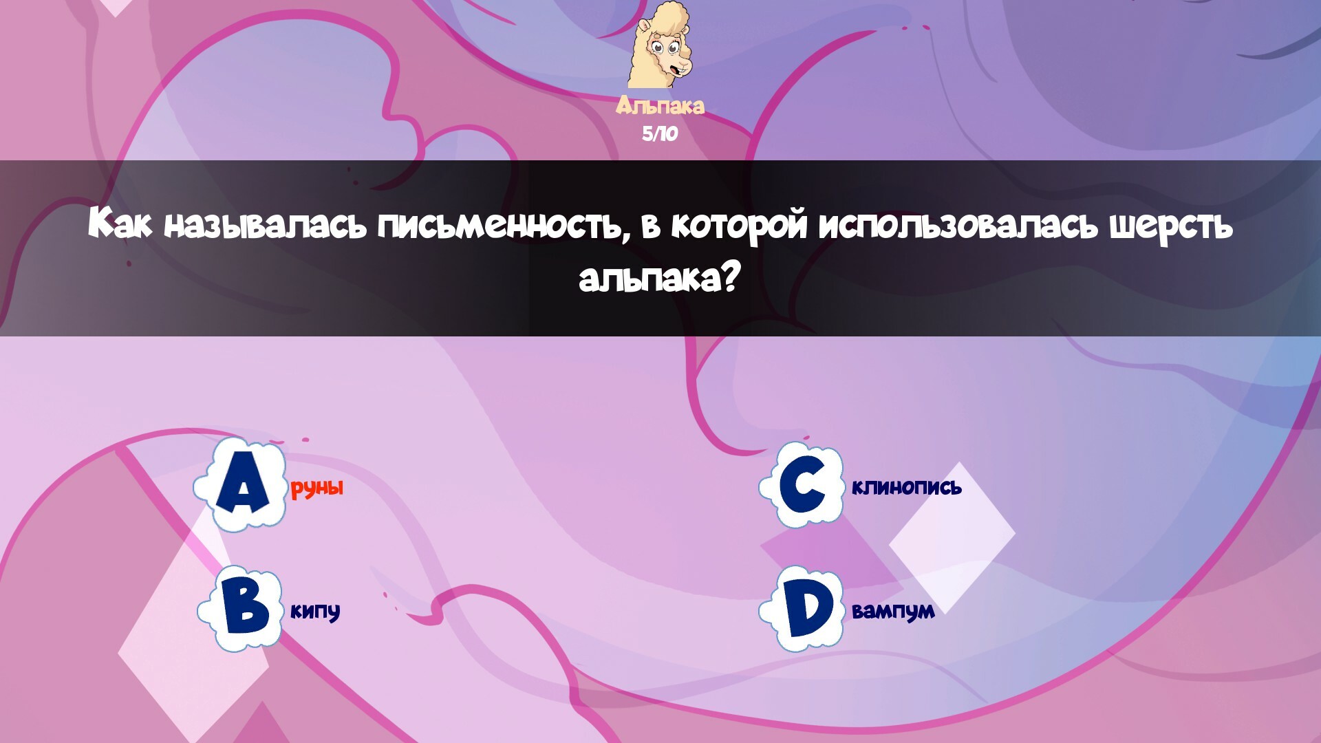 Альпака-Познавака - интерактивное приключение для детей в формате визуальной новеллы с викториной.