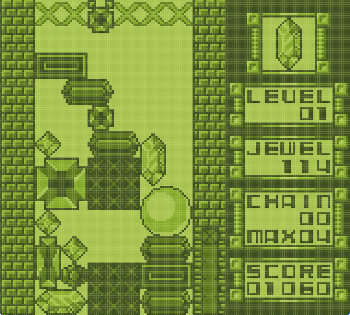Drop like blocks on one another to make them disappear...But! Don't do it too simply, or you'll incur a block penalty! Avoid the penalty and get the most points by dropping gems in a way they'll chain off each into an avalanche of gems and points!