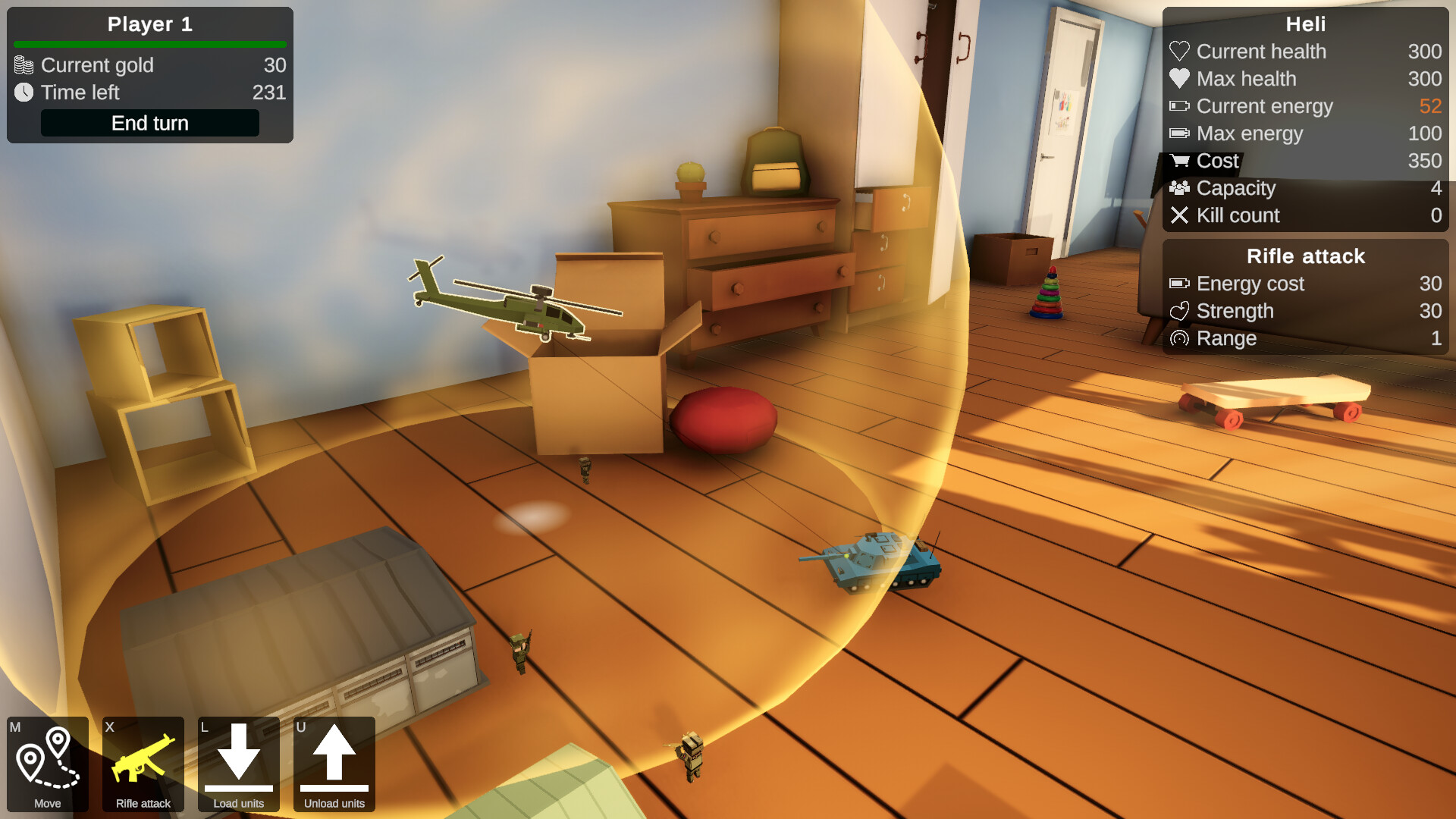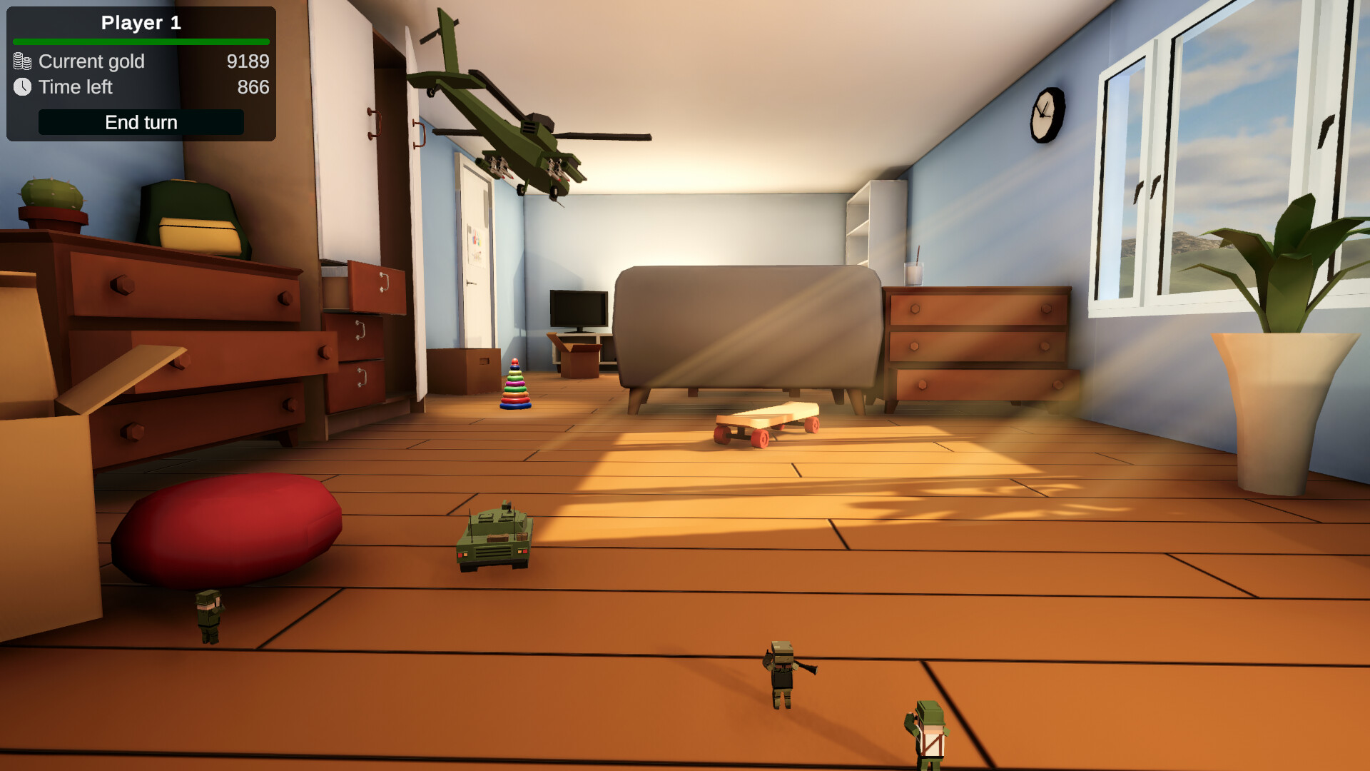 Разрабатывай стратегии эпических сражений и побеждай противников в условиях детской комнаты. Вербуй подразделения, перемещай их по полю и используй их уникальные способности, чтобы обхитрить противника. Почувствуй радость детских игр в войнушки – играй прямо сейчас!