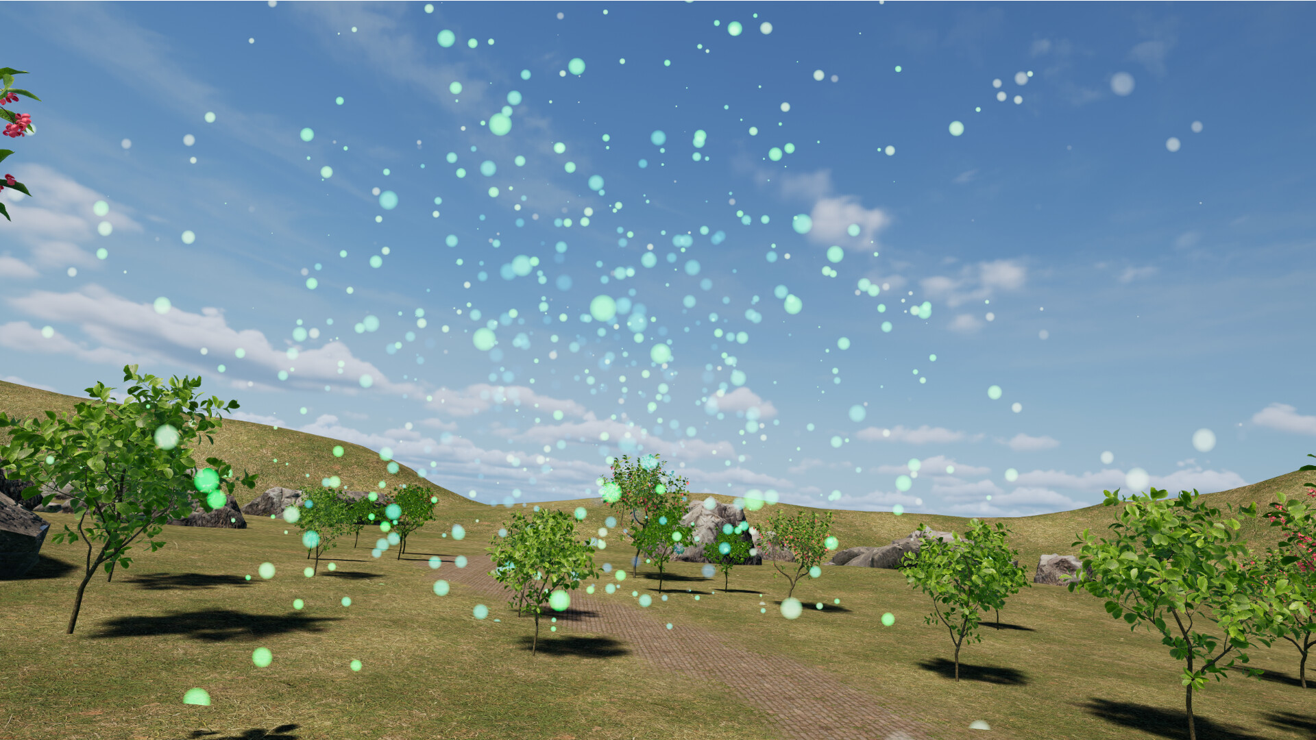 This is a VR game whose main content is to help guide players in meditative breathing. In the game, players can choose the duration or number of meditation breaths. The game will randomly load different environments, which are basically calm and peaceful outdoor environments, such as parks, seaside, snow-capped mountains and woods, etc. Players need to hold the side grips with both hands when inhaling and release the side grips when exhaling. When breathing, the game will use the particle system to express the changing process of energy, guiding players to pay attention to their bodies. Through multiple breathing exercises, players can focus more and release stress