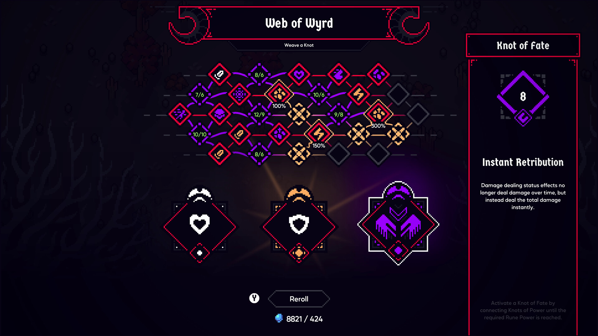 Эта система метапрогрессии позволяет менять и усиливать умения персонажа с помощью рун раскраски. Тебе предстоит мудро распределить как можно больше ценных рун в ограниченном количестве ячеек, чтобы извлечь максимальную пользу для своих умений, стиля игры и стратегии.