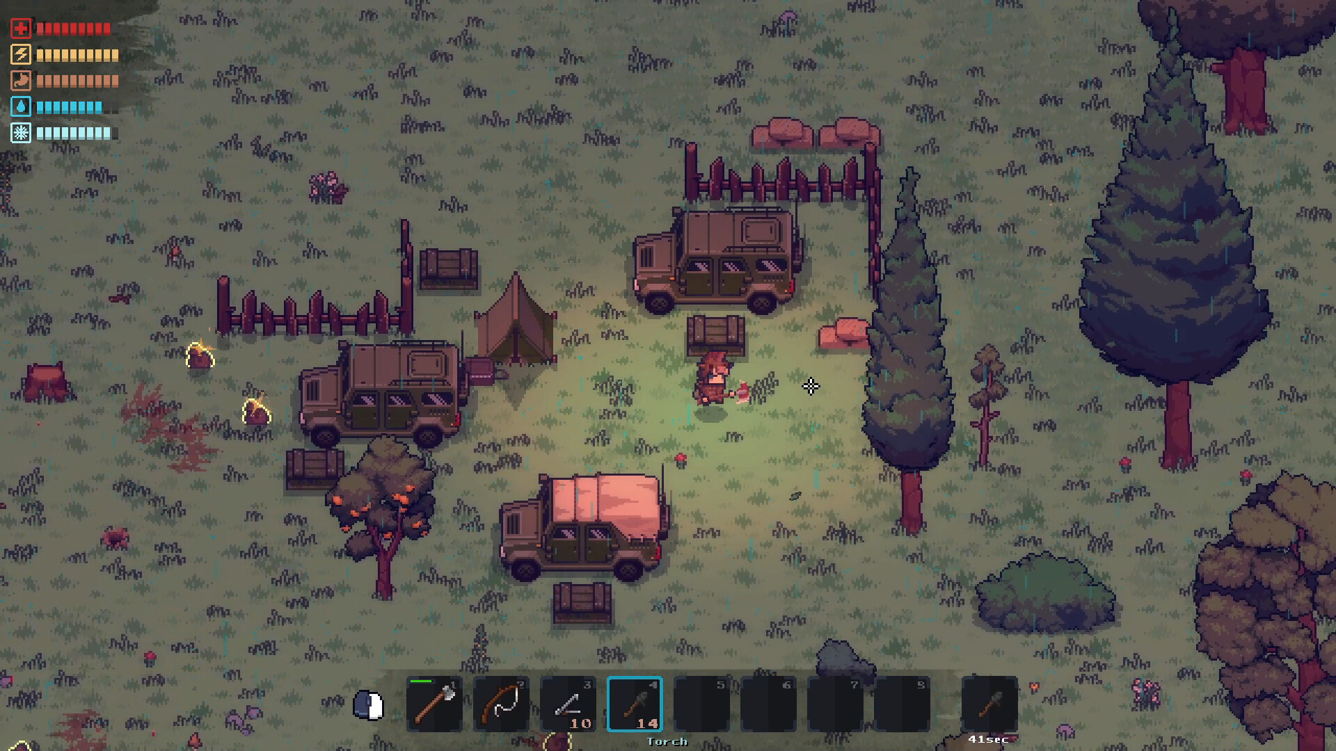 Путешествуйте по процедурно генерируемому лесу, добывайте ресурсы, исследуйте новые локации, развивайтесь, чтобы выбраться из леса, окутанного порчей.