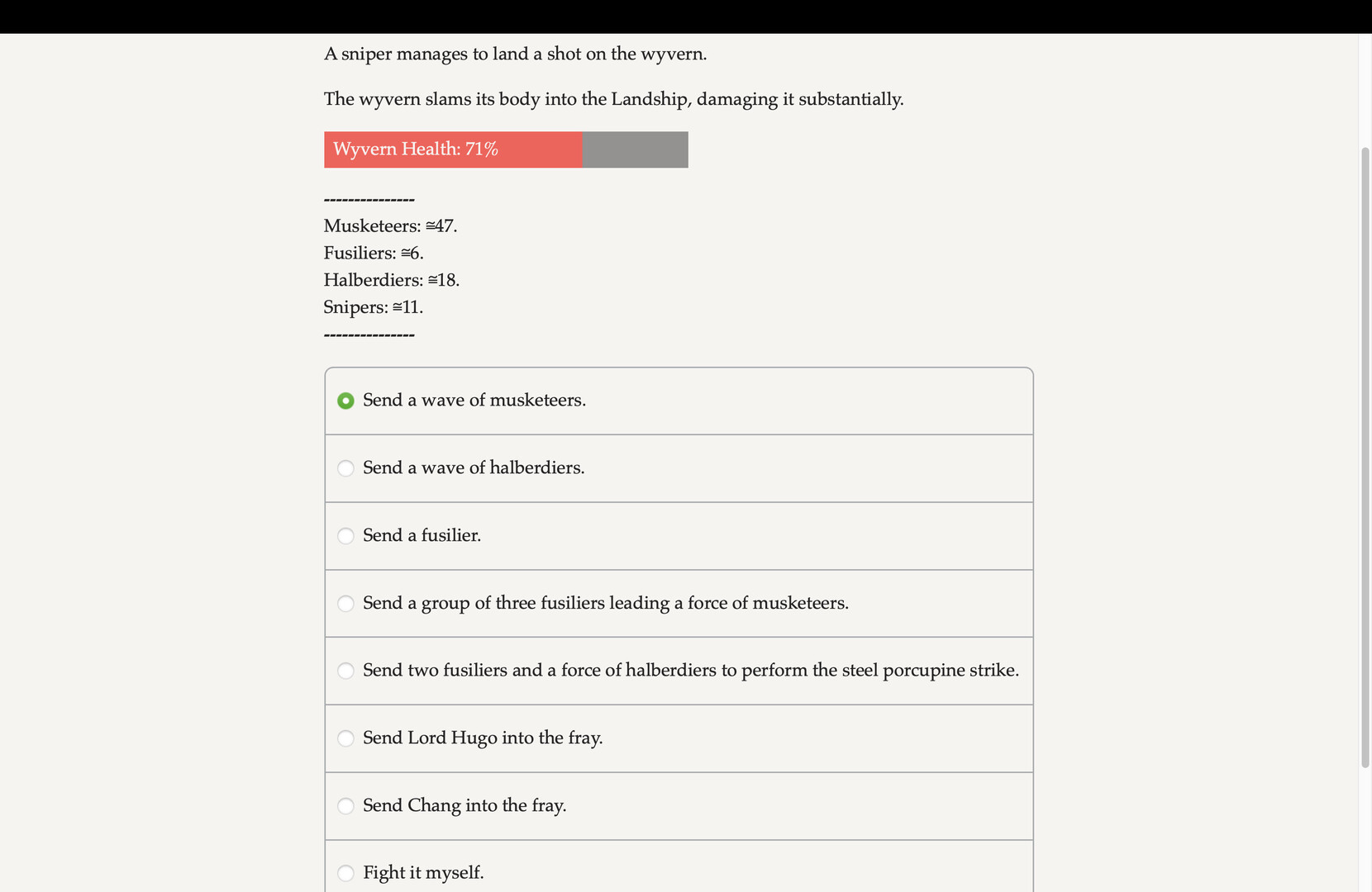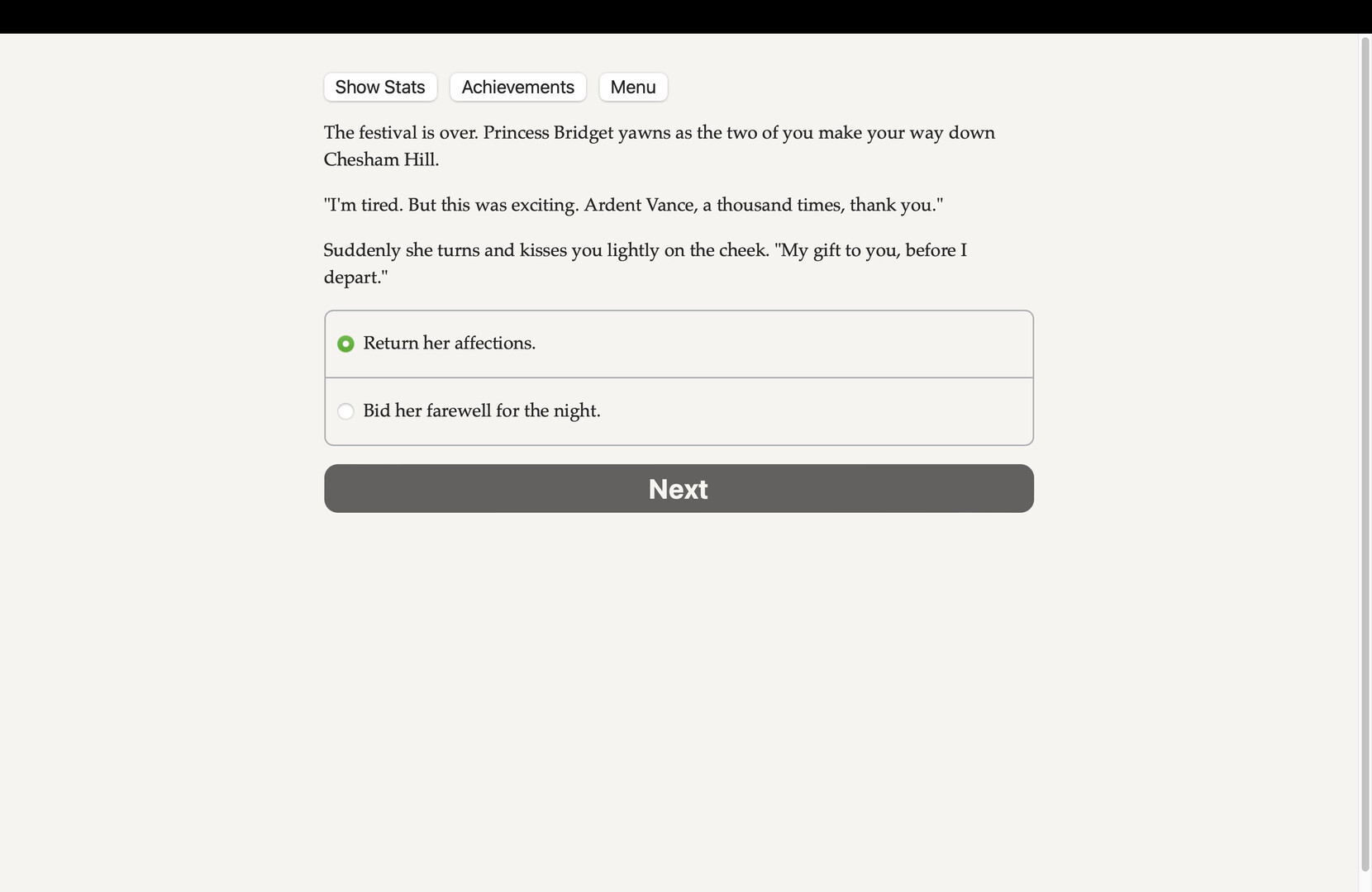 Dragon of Steelthorne is a 170,000-word interactive novel by Vance Chance, weaving together story, city management and combat in a unique take on choice-based Interactive Fiction. Customize the level of challenge with four difficulty settings. It's entirely text-based—without animation or sound effects—and fueled by the vast, unstoppable power of your imagination.