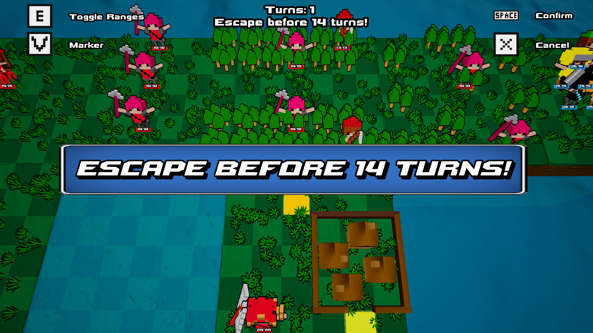 Assemble your villagers and defeat the ultimate evil! Valiant Villagers is a rogue like strategy RPG where your choices determine your army's abilities and play style as you complete various map objectives. Pick two of your villagers' initial classes and embark on an adventure as you try to complete 5 maps in a row without your army being defeated.
