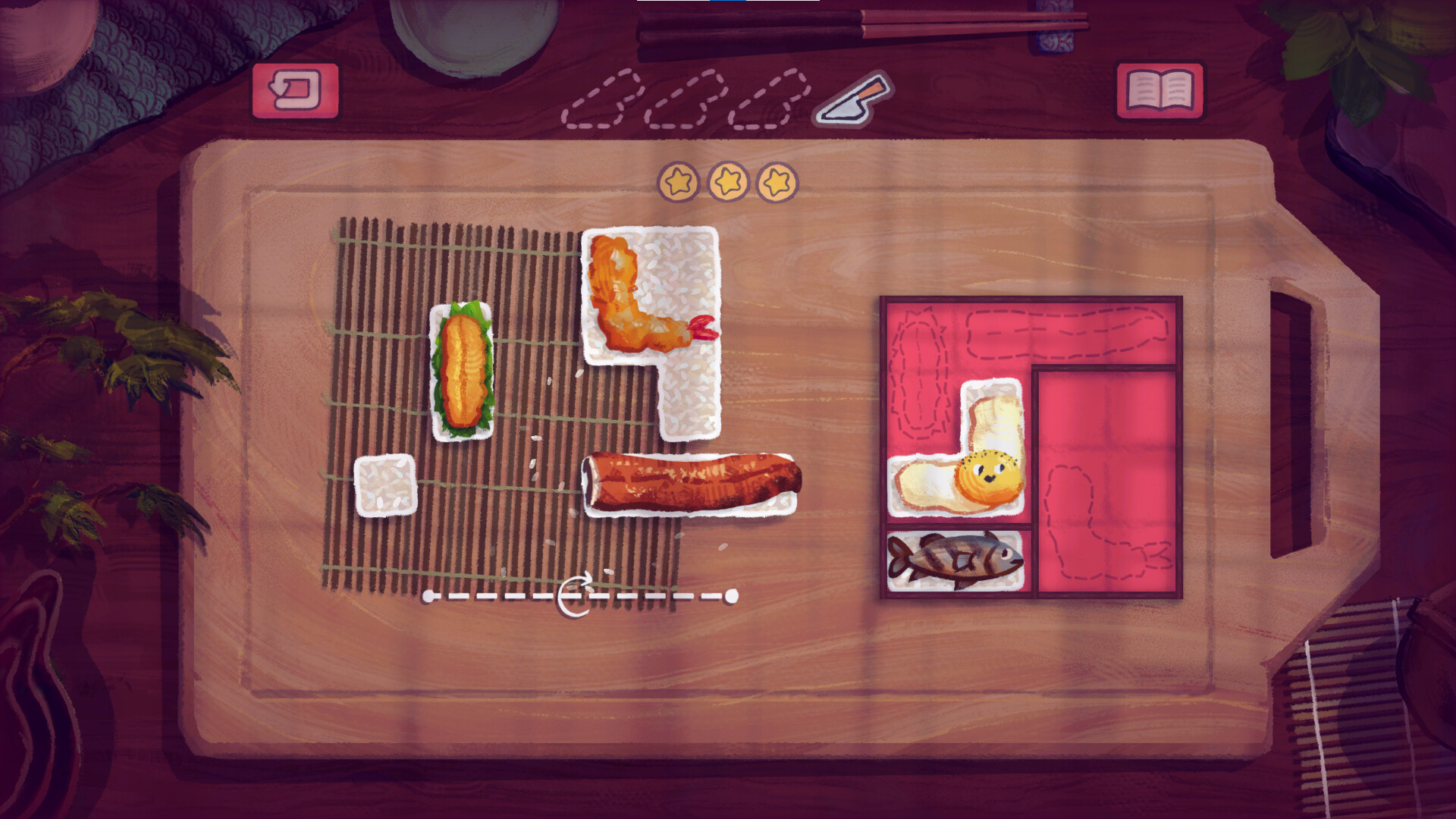 Bento Blocks — это уютная головоломка, в которой вы нарезаете ингредиенты и аккуратно раскладываете их по бенто-ланчбоксам, используя минимум разрезов.