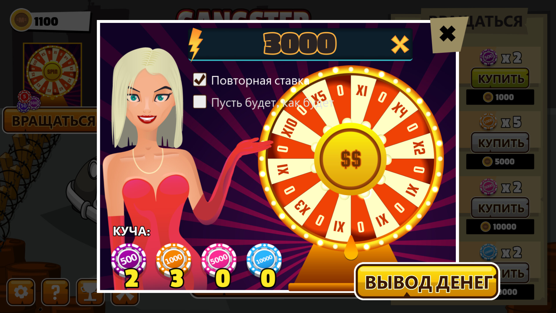 Выигрывайте монеты по-гангстерски с помощью Колеса фортуны.