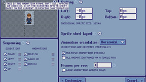 - Layout: Determine the axis along which directions and animations are exported in the sprite sheet, as well as how distinct animations follow one another