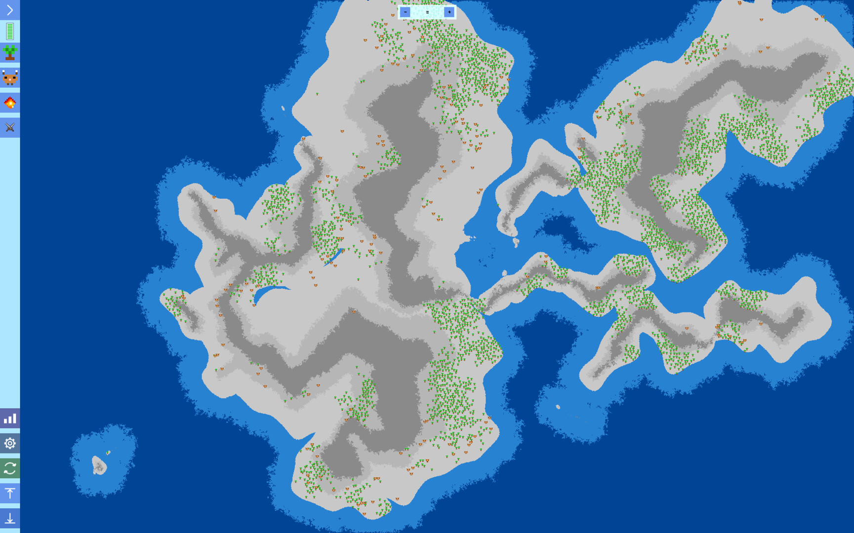 Сначала карту заселяют растения и животные, затем появляются человеческие племена. Когда мир становится достаточно “живым”, вы выбираете своё племя — и пытаетесь провести его через рост, кризисы и конфликты так, чтобы в итоге оно осталось единственным племенем на карте.