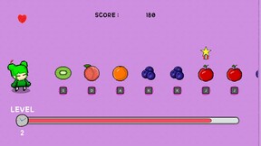 Eat the fruit closest to the girl with the correct input to earn points. If you input incorrectly, you lose a heart.