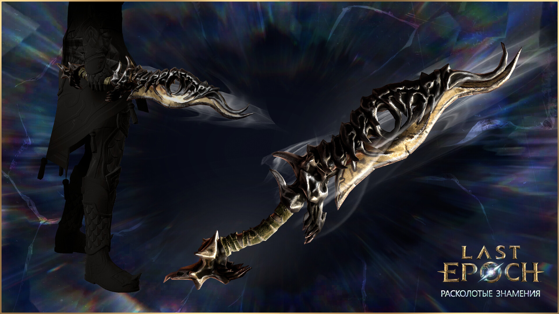 Погрузитесь в мир расколотых граней времени и реальности. Набор Расколотый путник знаменует ваше путешествие реликвиями разрушенных миров: от смертельно острого оружия «Призрачный клинок» до плаща «Вознесение затмения», а также помощника в лице 4-кратного борца-чемпиона Конца времен, который будет всюду следовать за вами по пятам.
