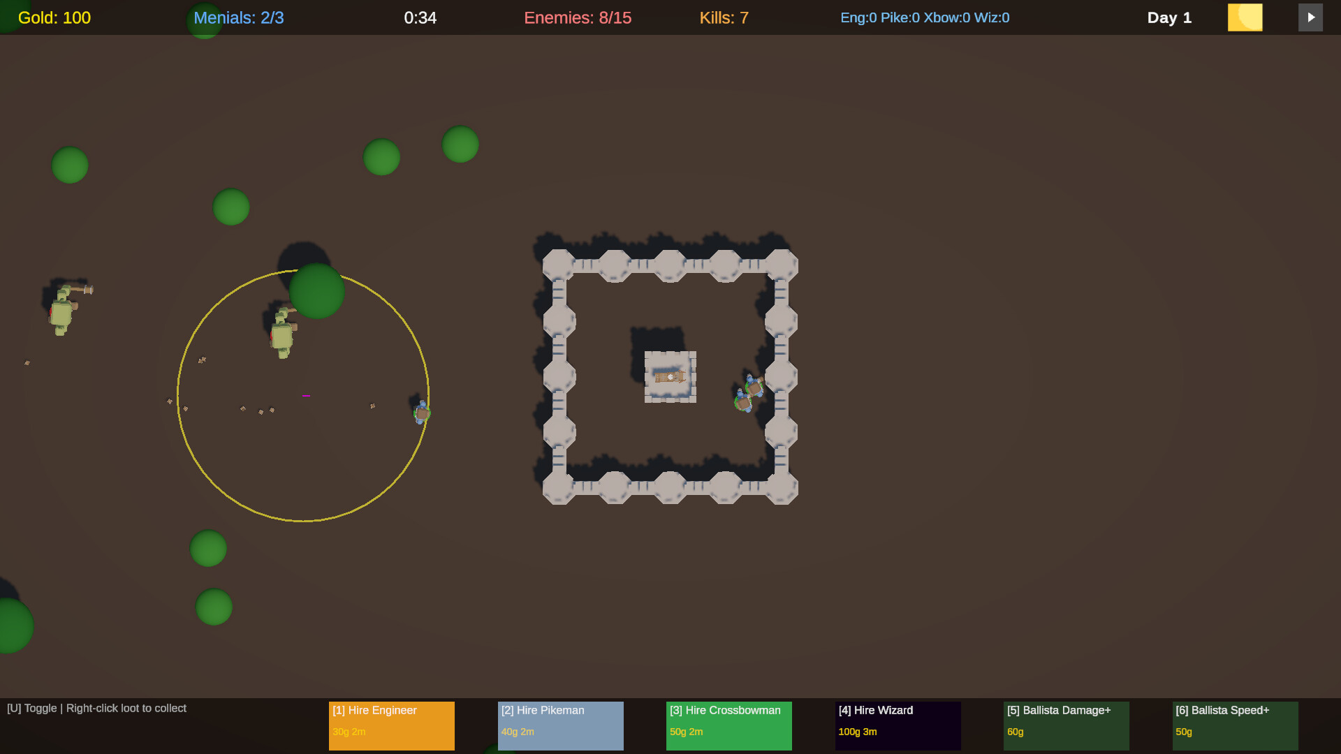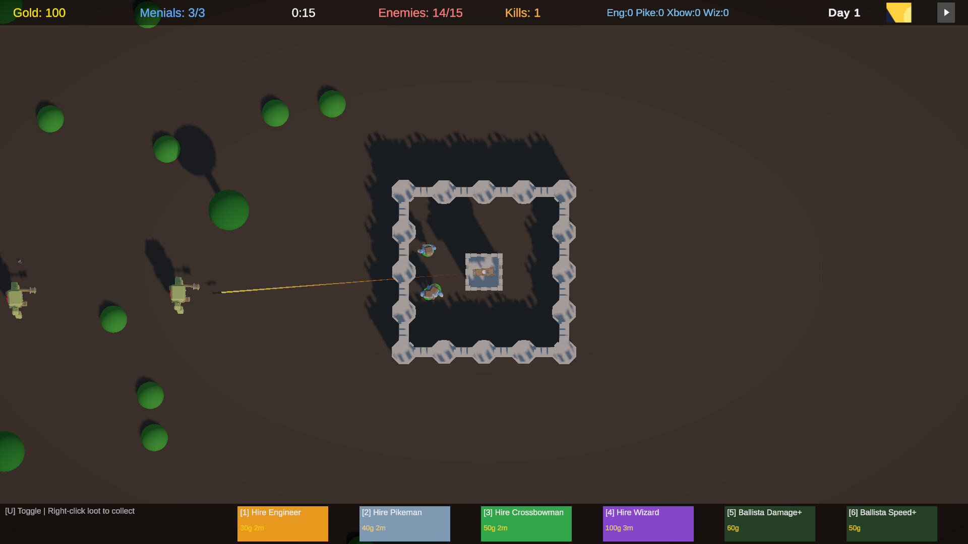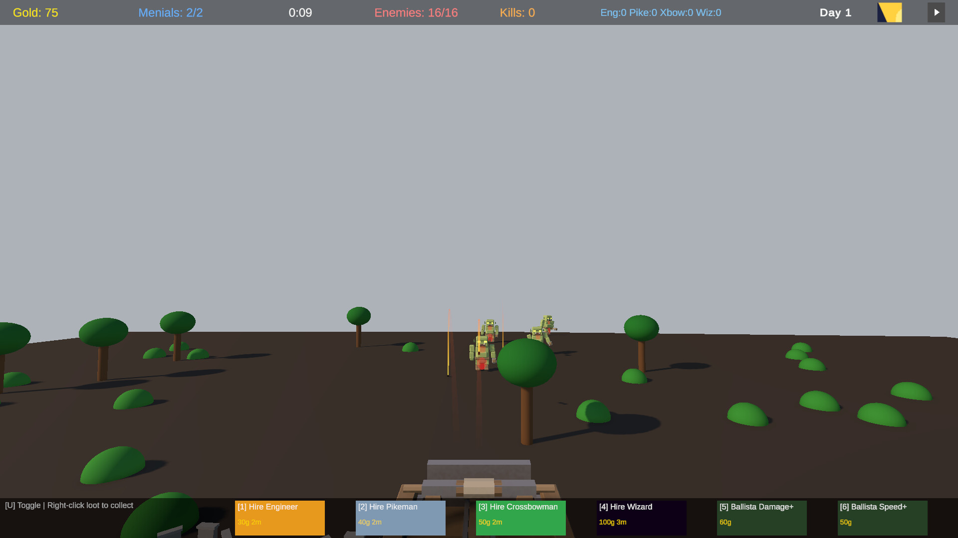 Defender of the Orcish Marches is a real-time tower defense game where you command a fortress under siege. Aim your ballista to cut down enemies directly, hire defenders to patrol and fight autonomously, and send menials scrambling to collect the spoils of war before the next wave hits.