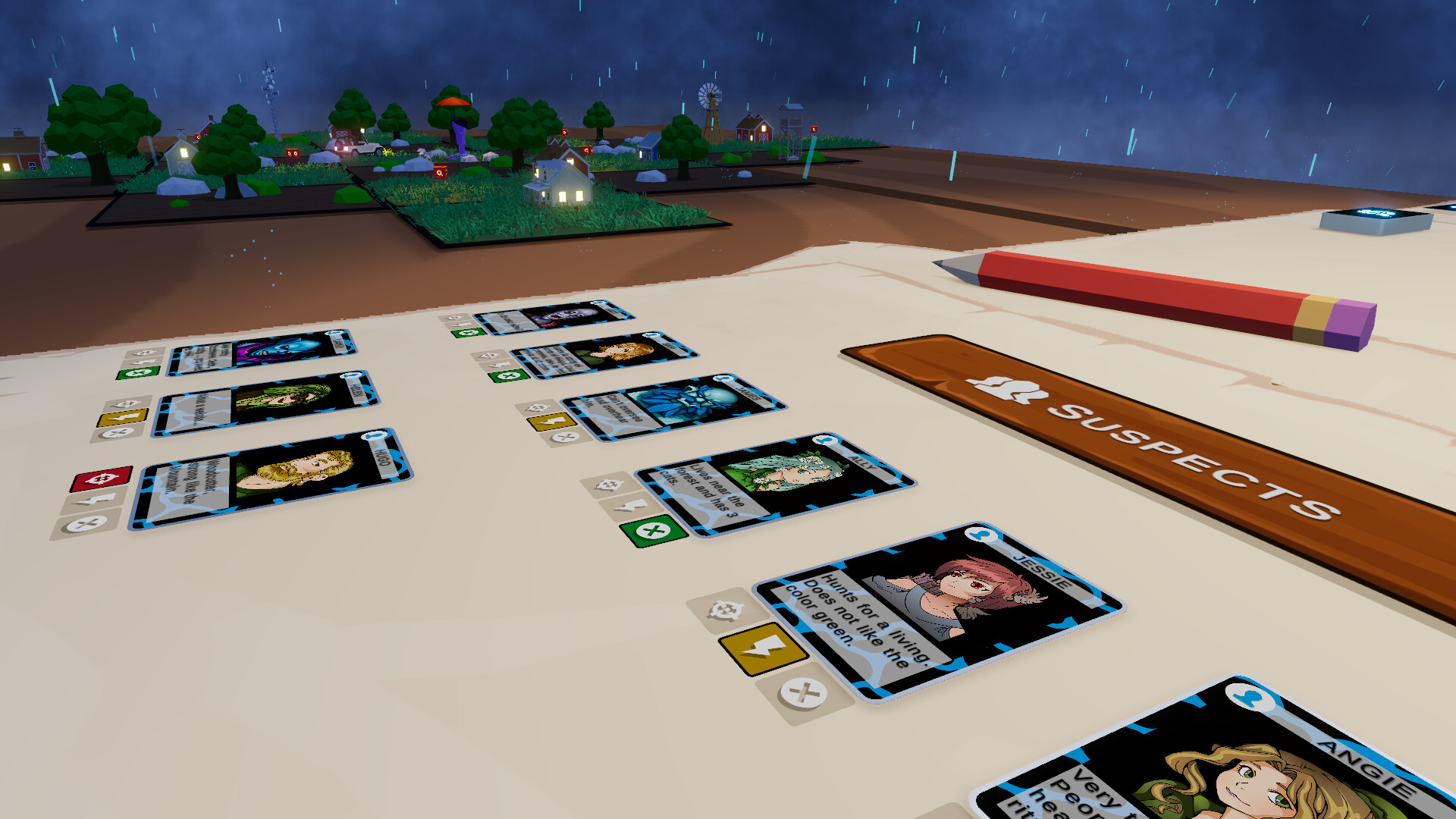 Collect Clues: Find clue cards scattered across randomized maps, that reveal the target’s appearance, habits, or secrets.
