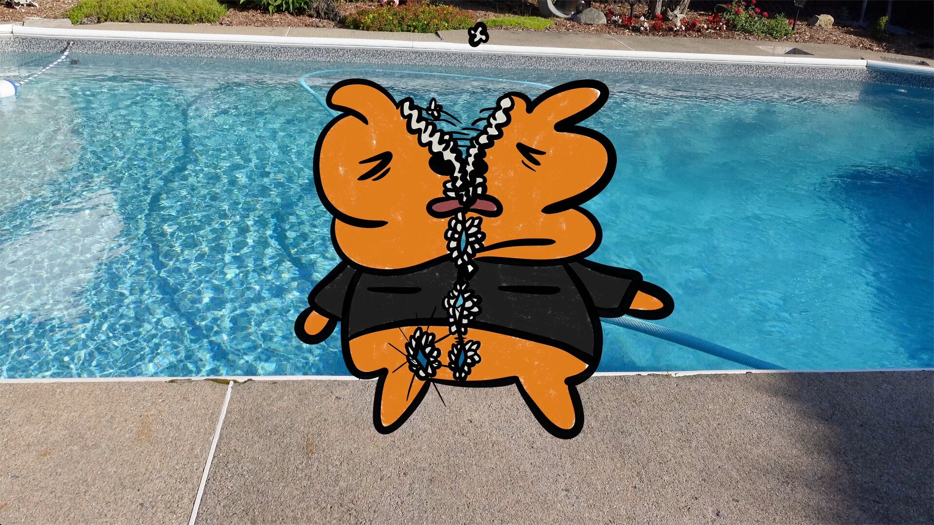 Animated Cartoon Bear superimposed on the live action footage