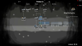 You start with a train car, a few people, meager resources, and must build up to the ultimate train to bring humanity through the frozen apocalypse.