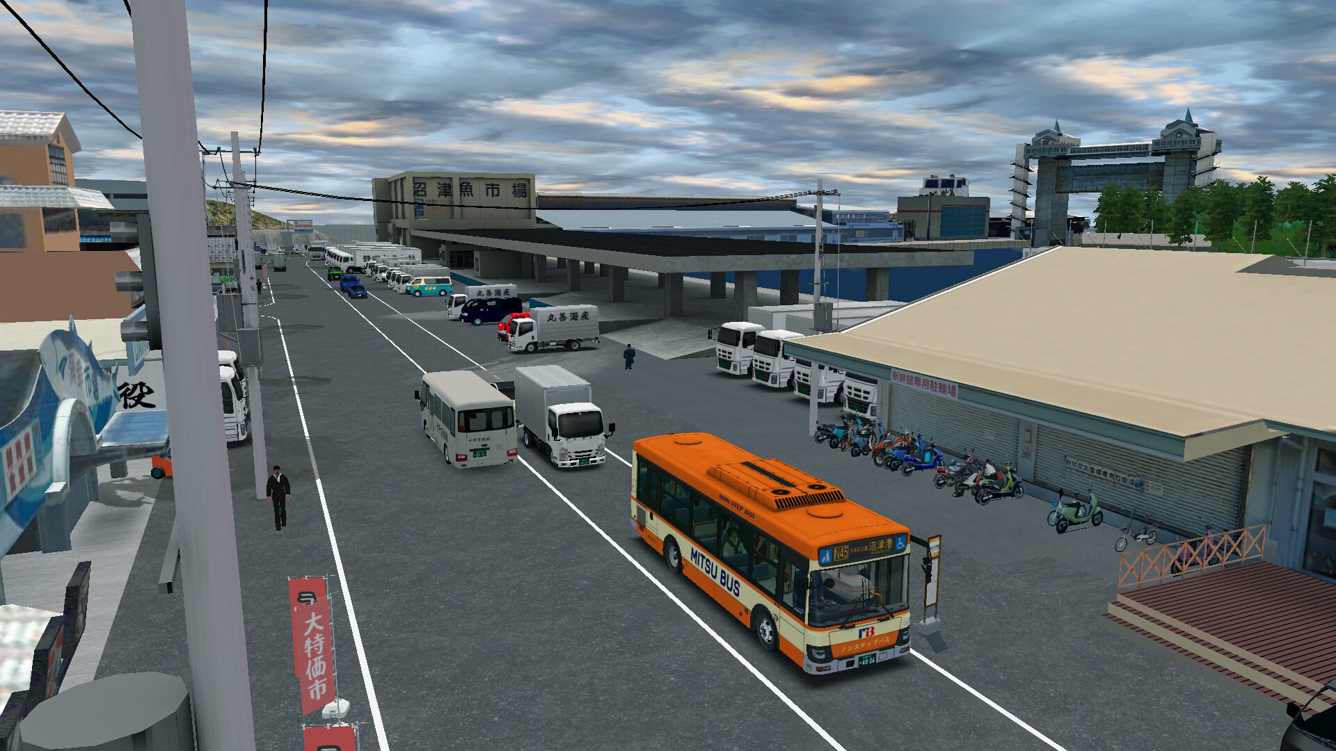 As a key transport hub in eastern Shizuoka, Numazu’s bus network links major landmarks such as Numazu Station, Honmachi, Otemachi, Numazu Port district, and Meidensha’s factory zone. Explore real Japanese street layouts, seaside scenery, and vibrant local neighborhoods recreated with care and accuracy.