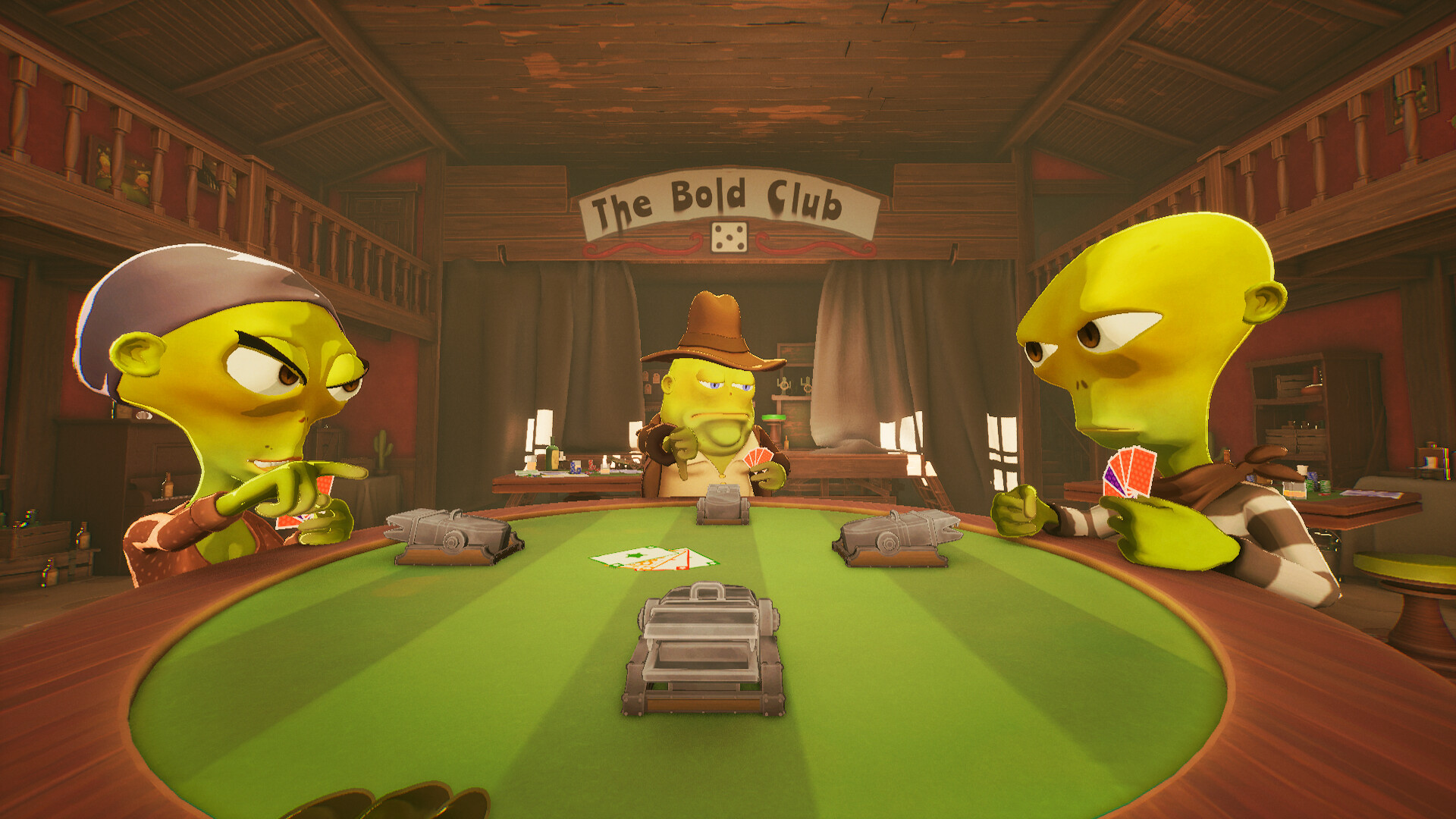 В The Bold Club жульничество разрешено… В любой момент ты можешь тайно избавиться от дополнительных карт, просто так. Чем больше карт ты тайком утаишь, тем дольше их будет избавляться, давая другим больше времени, чтобы поймать тебя с поличным.