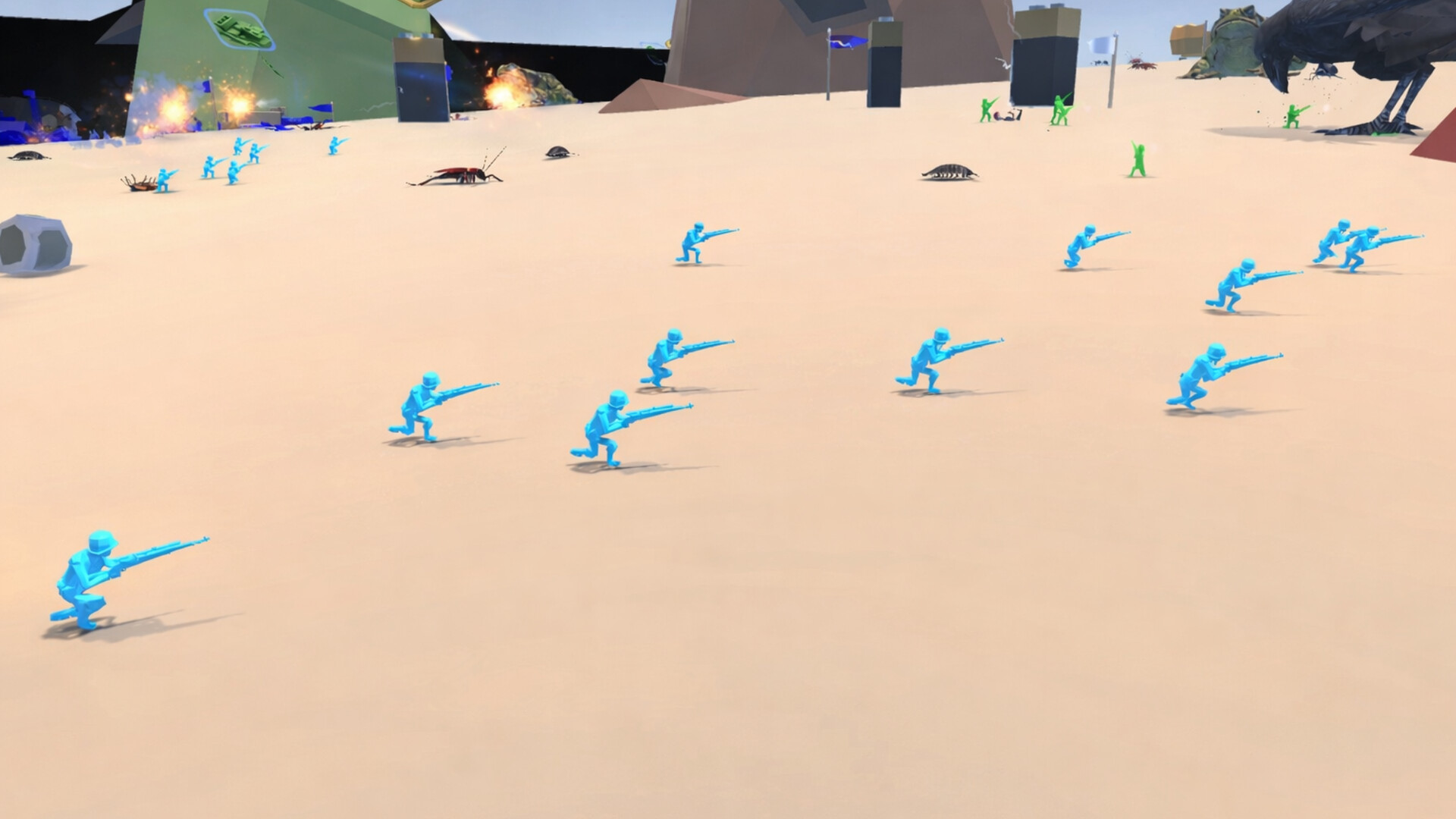 Enemy commanders actively expand, build defenses, capture territory, and adapt to threats. AI factions fight each other as well as the player, creating large-scale battles that evolve organically.