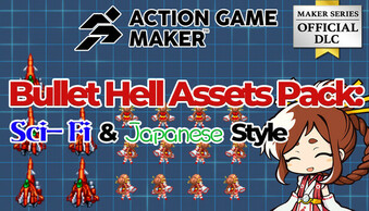 This is a bullet hell shooting game asset pack for use with ACTION GAME MAKER. The pack includes two complete visual themes—Sci-Fi and Japanese style—as well as a sample project.