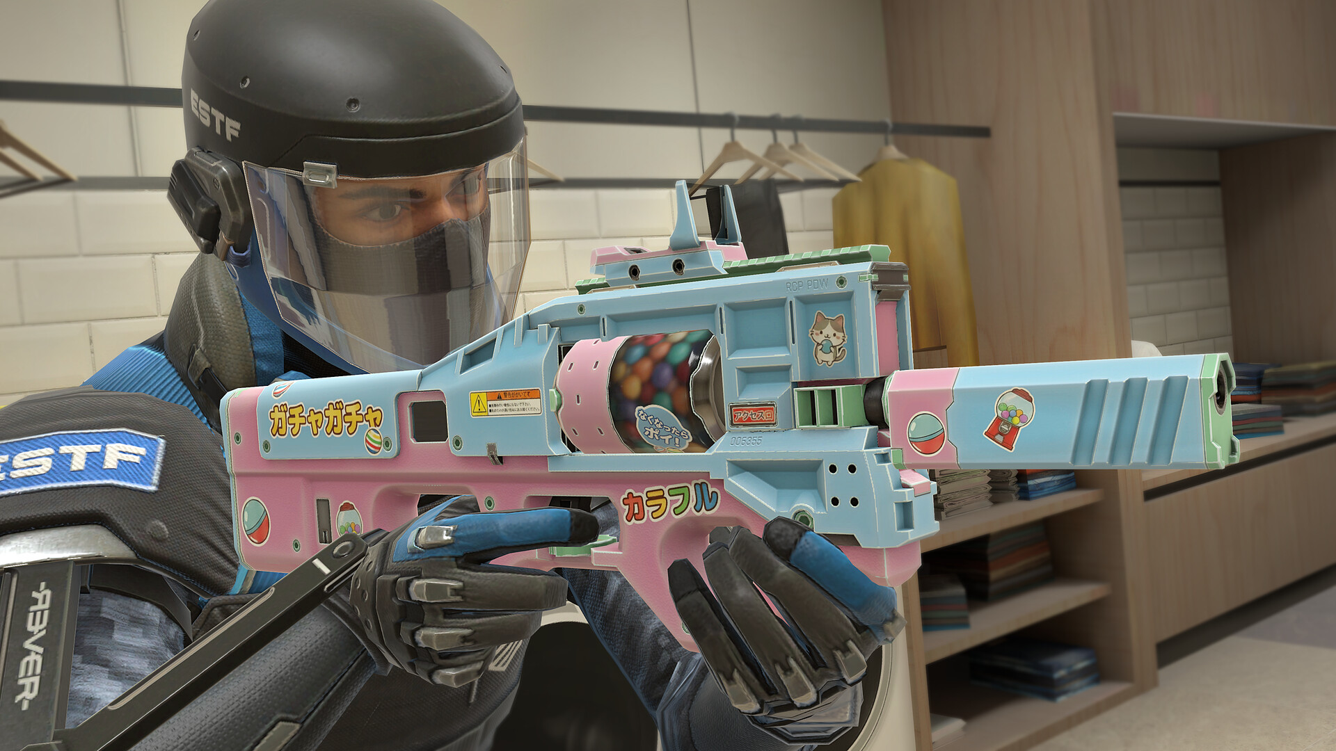 Blending soft pinks and light blues, these playful skins reveal colorful bubblegum balls rolling through barrels or magazines. These skins are fully decked out with playful gum ball muzzle flashes, bubbly popping sounds, and candy-inspired designs.
